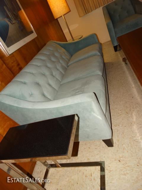 Mid Century Modern Reproduction Sofa, Pretty Baby Blue