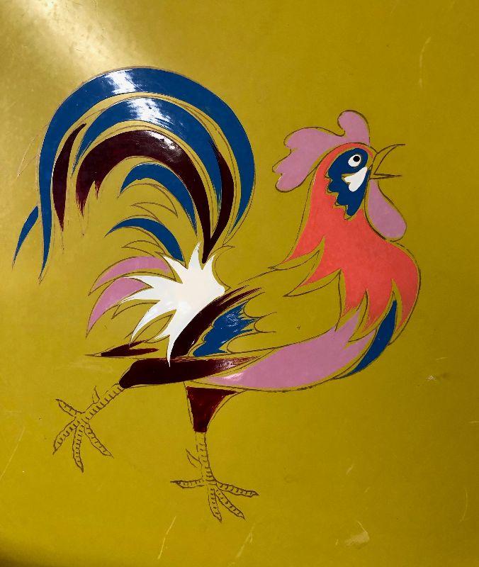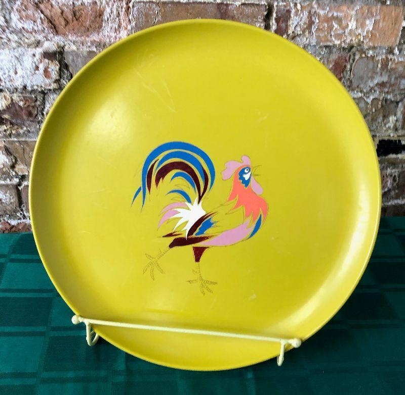 Here is a vintage 14" charger from the Mid Century...Rooster graphics on this round platter...Stand not included...