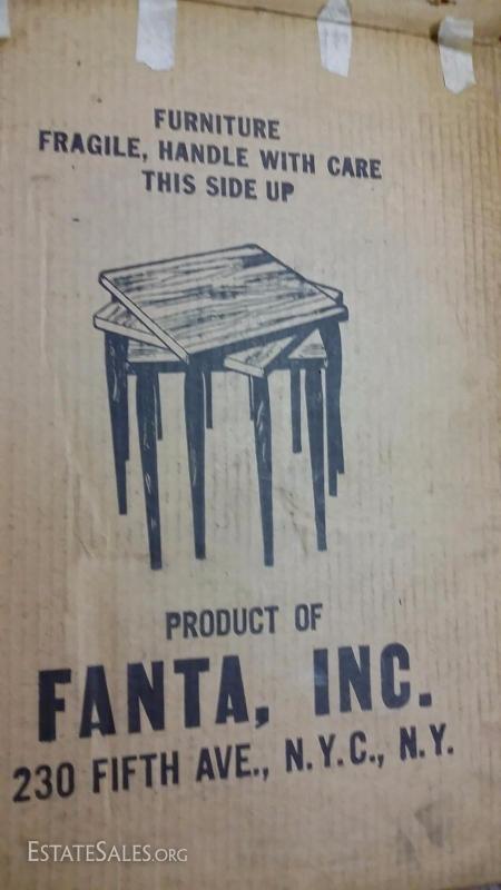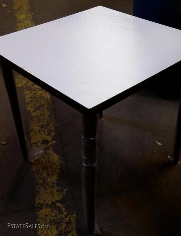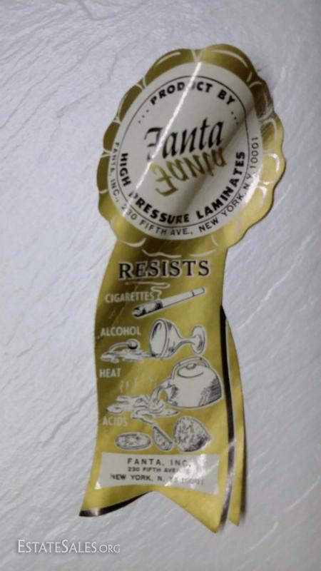 Product by Fanta High Pressure Laminates. New York NY. Tables advertised as being able to resist cigarettes, alcohol, heat, and acids. Table assembled for pics.