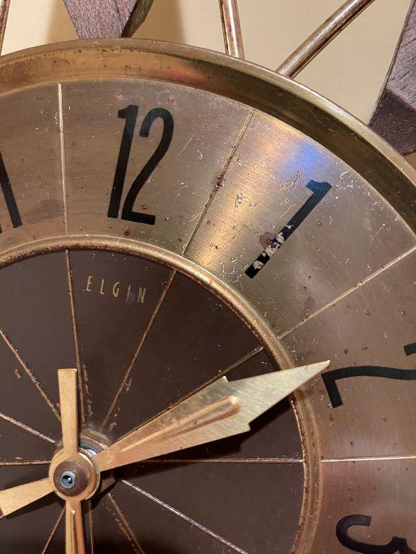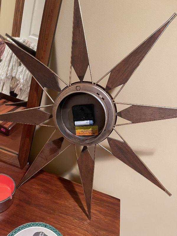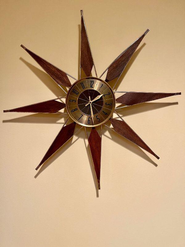 Mid Century Modern Elgin Teak Starburst Atomic Clock