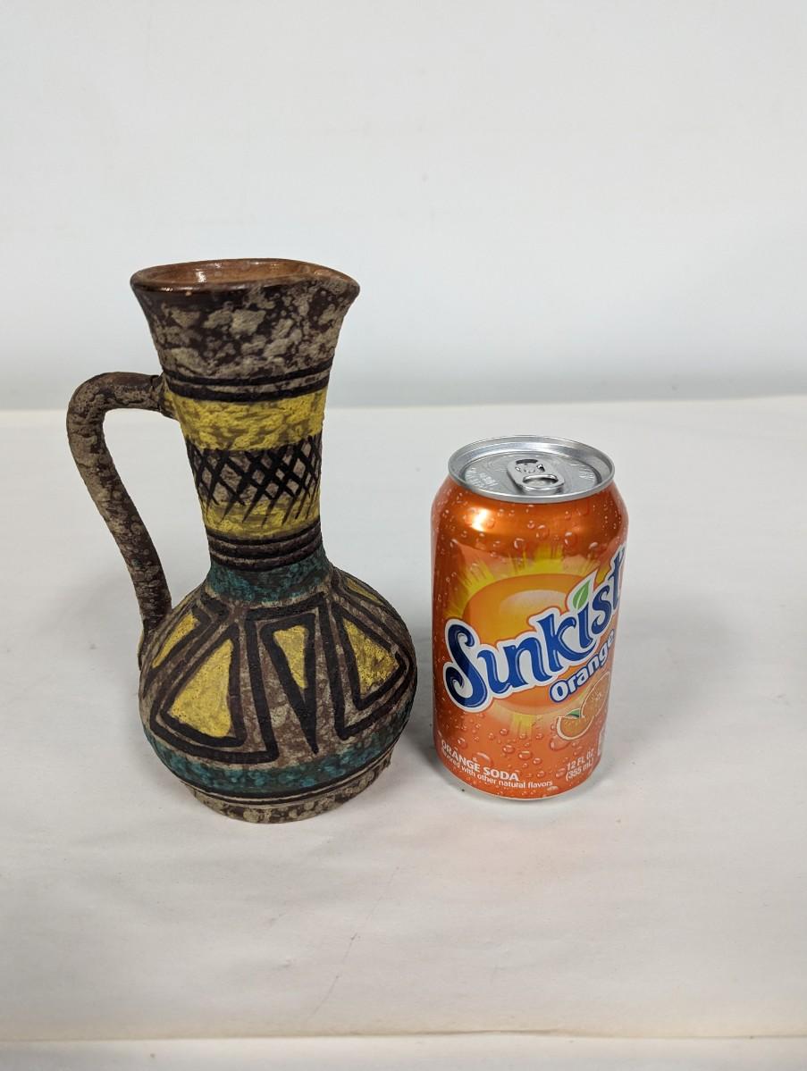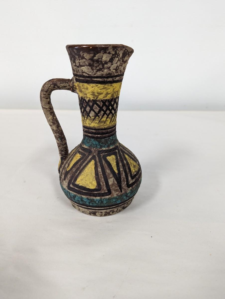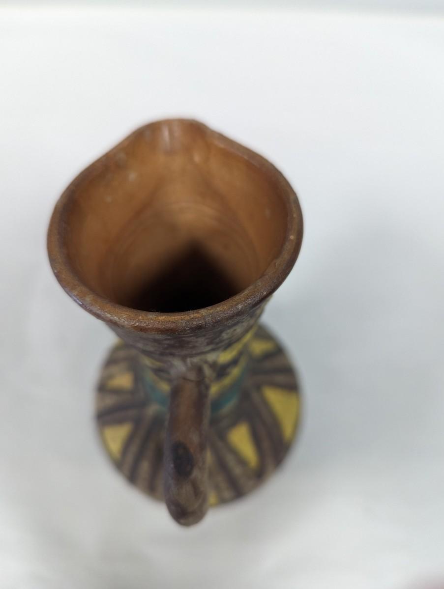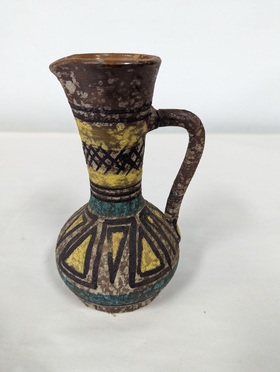 Mid Century Modern Terracotta Pitcher W/ Geometric Designs Made In Italy