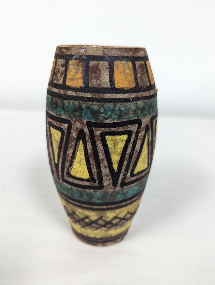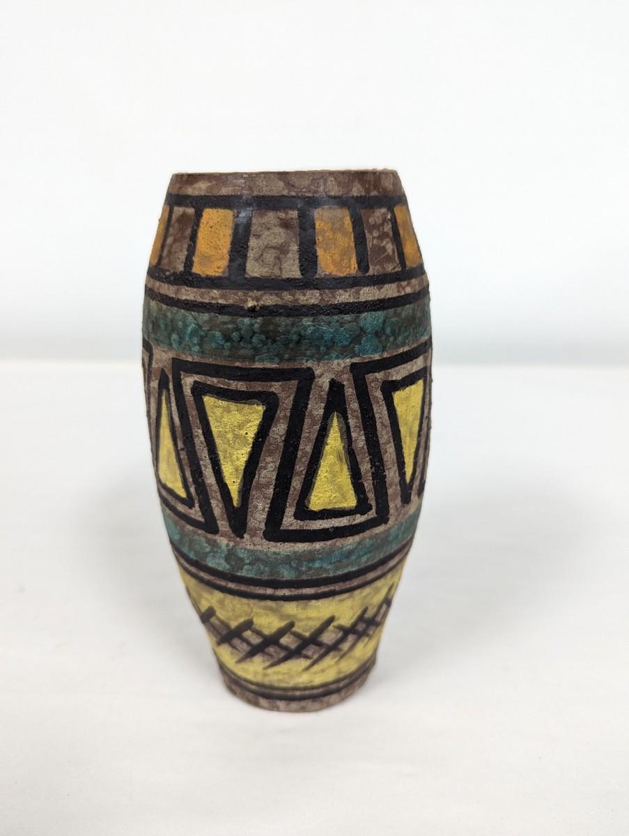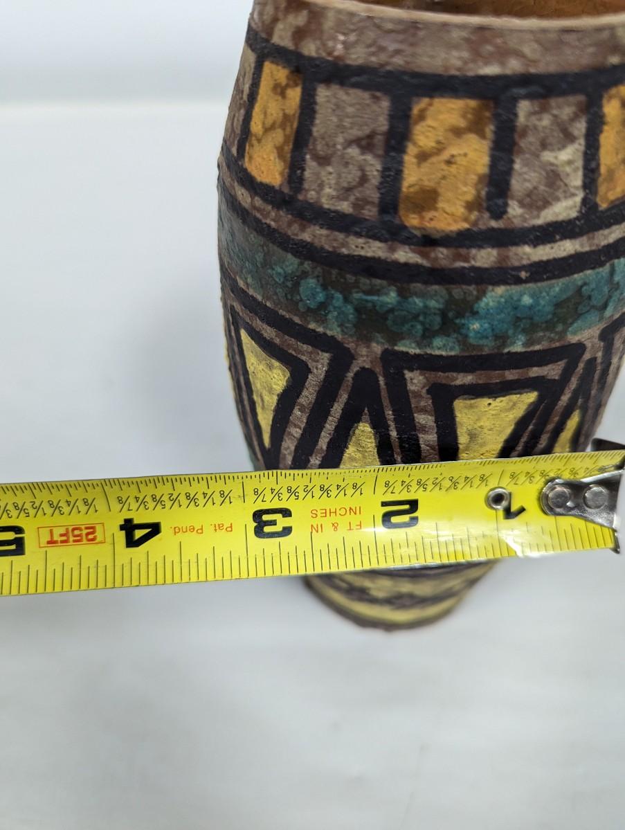 Mid Century Modern Terracotta Vase W/ Geometric Designs Made In Italy