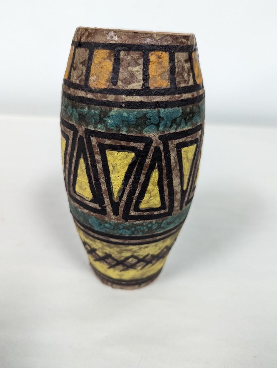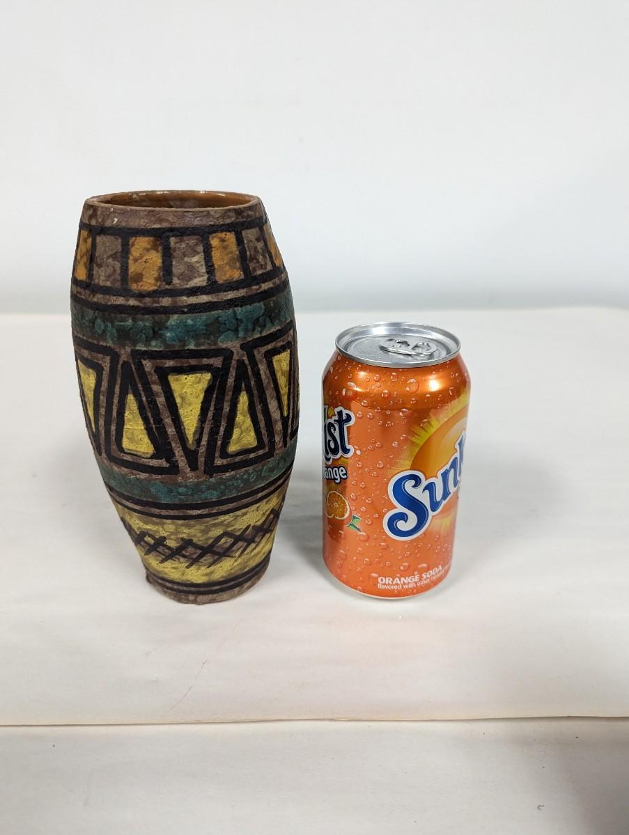 Mid Century Modern Terracotta Vase W/ Geometric Designs