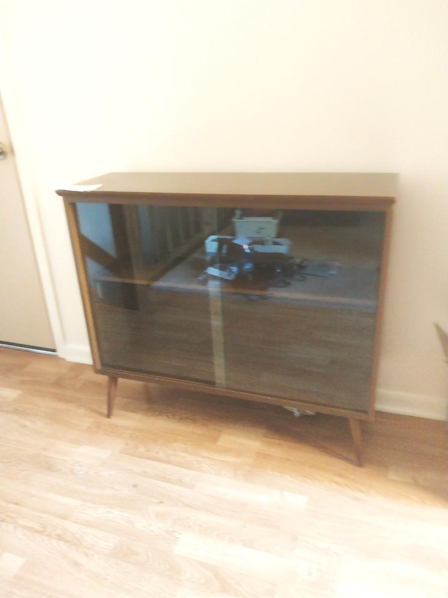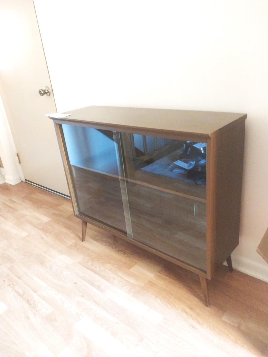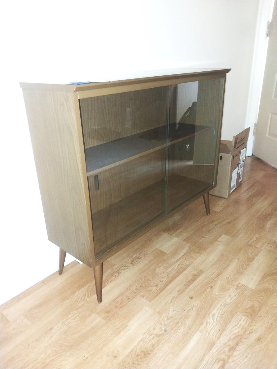 MID CENTURY MODERN TWO TEIR GLASS FRONT DISPLAY CASE