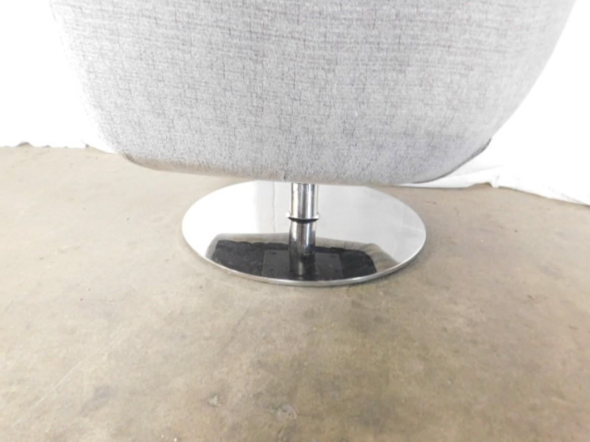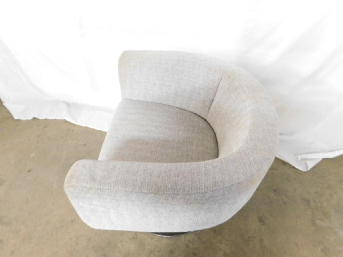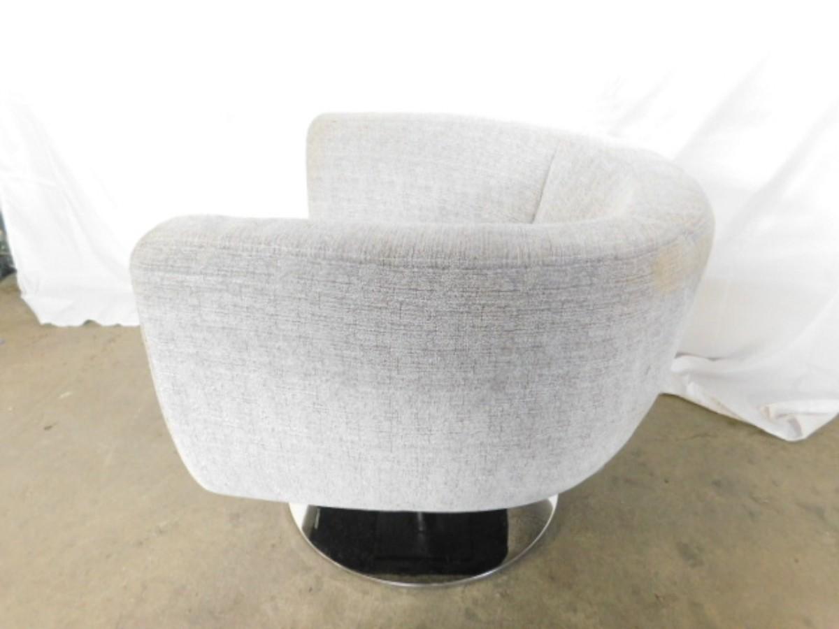 Mid Century Modern Upholstered Swivel Chair on Chrome Base has small punch on seat as shown