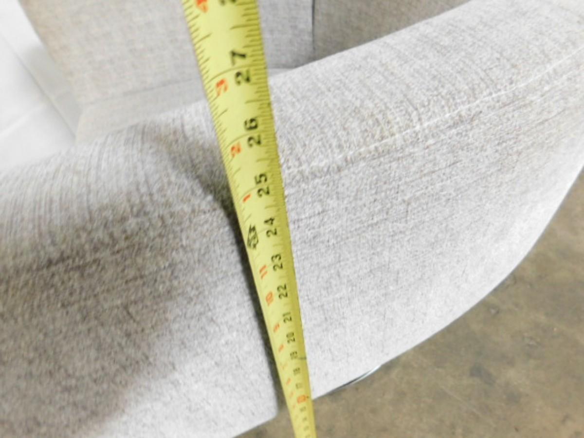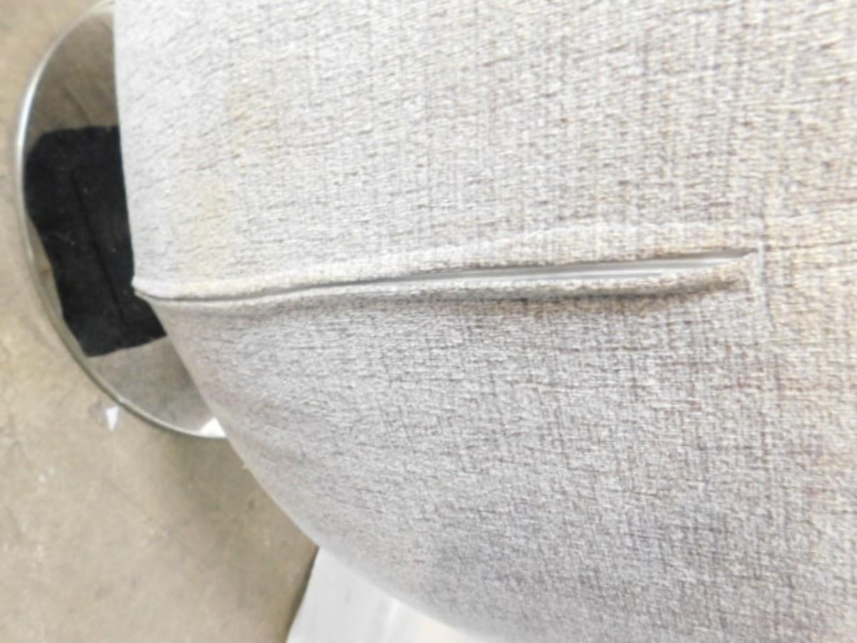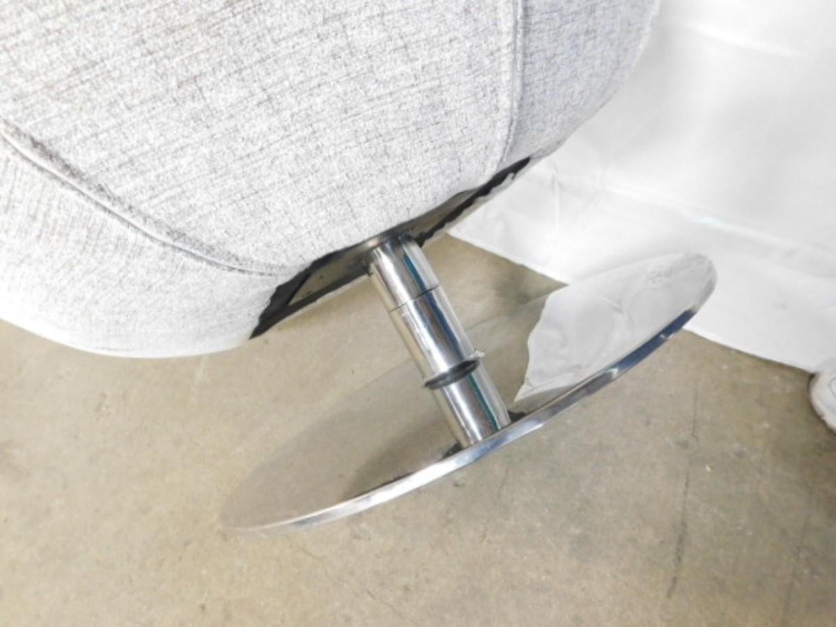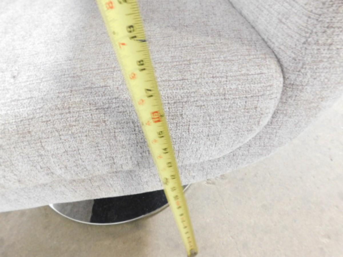 Mid Century Modern Upholstered Swivel Chair on Chrome Base has small punch on seat as shown