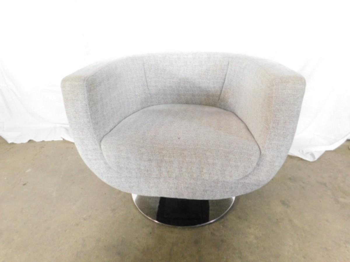 Mid Century Modern Upholstered Swivel Chair on Chrome Base