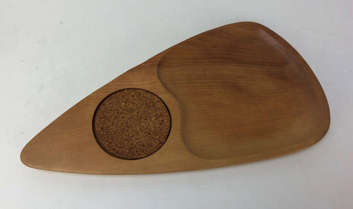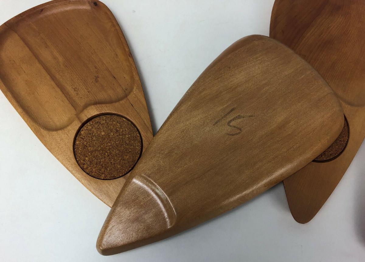 mid century modern WOOD & CORK SNACK TRAY SET 4