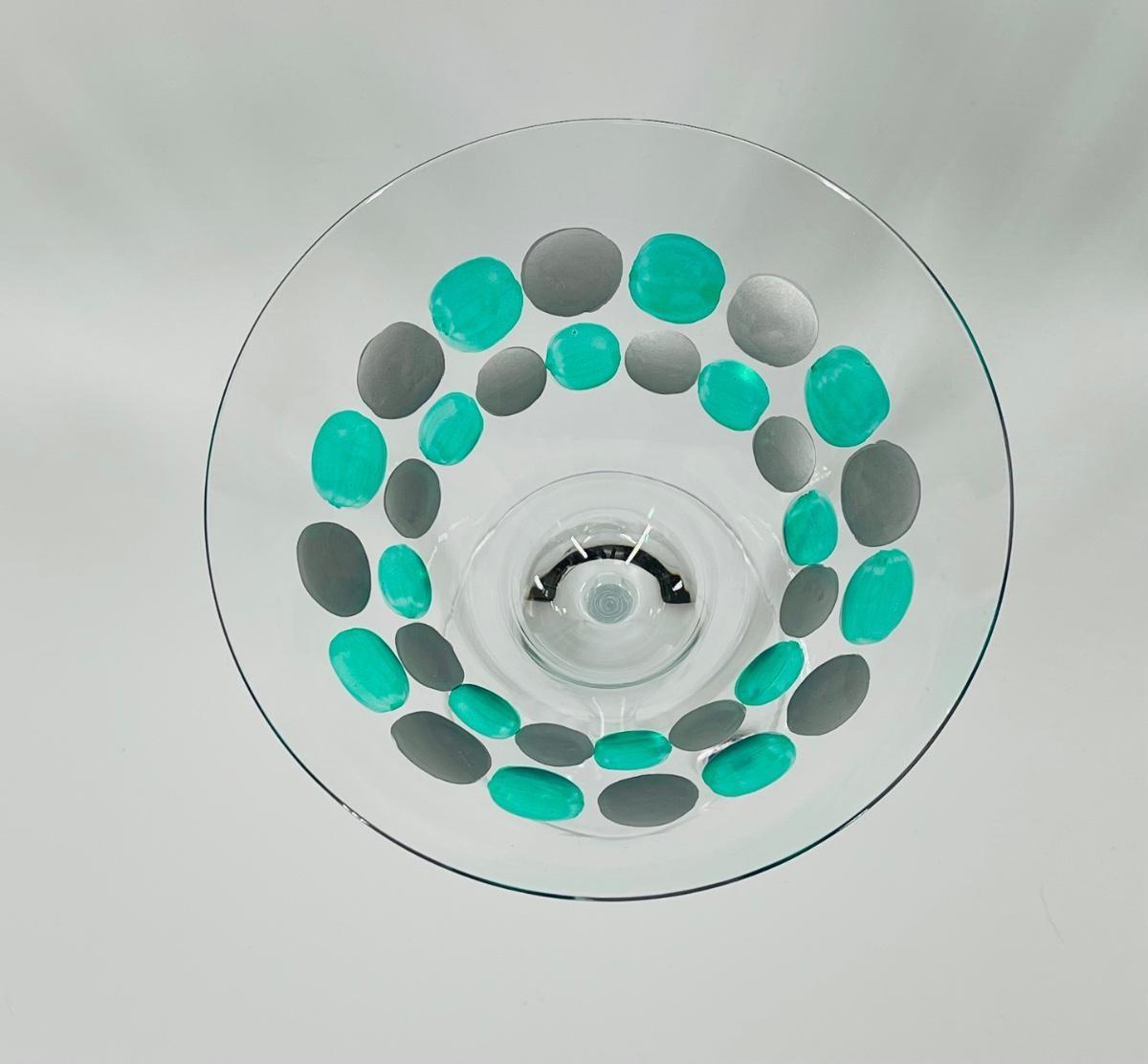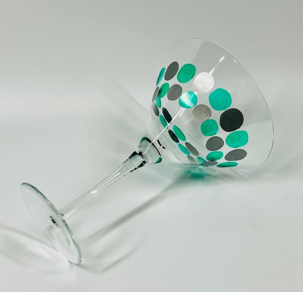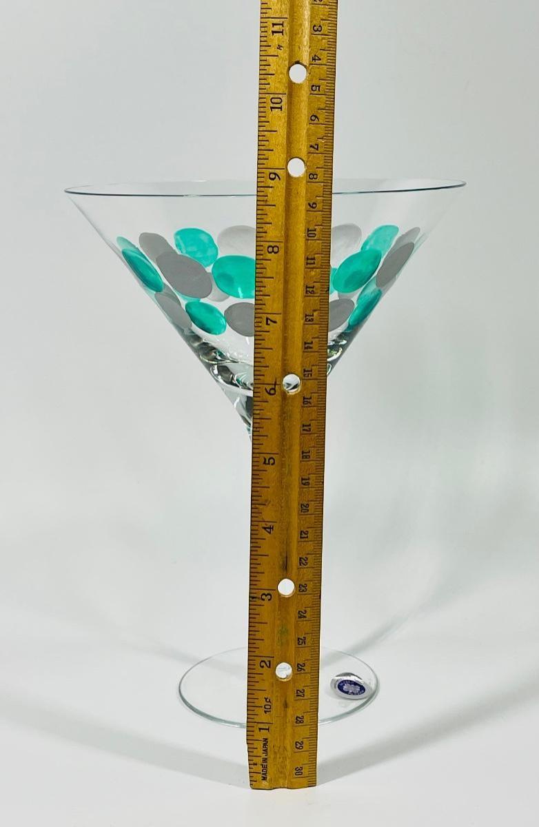 Mid Century MOMO PANACHE Painted Hand Blown Martini Glass From Romania
