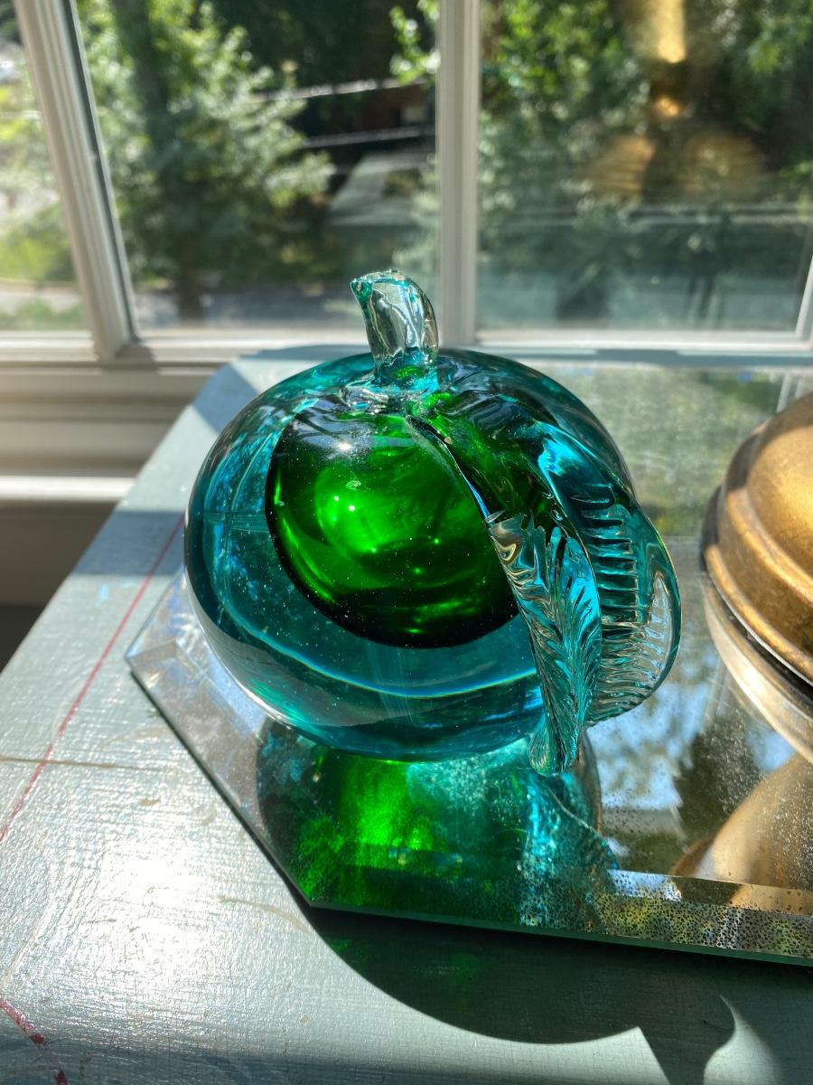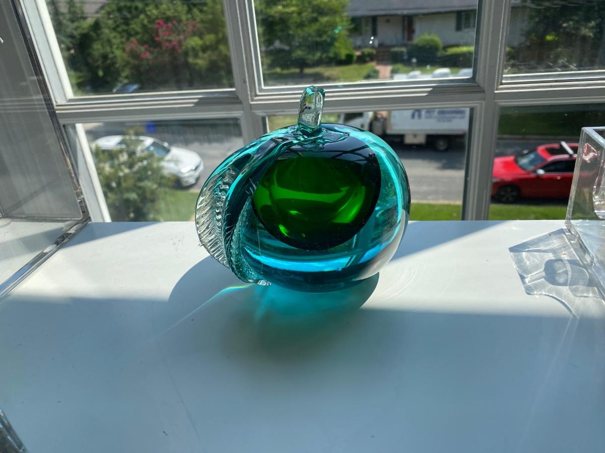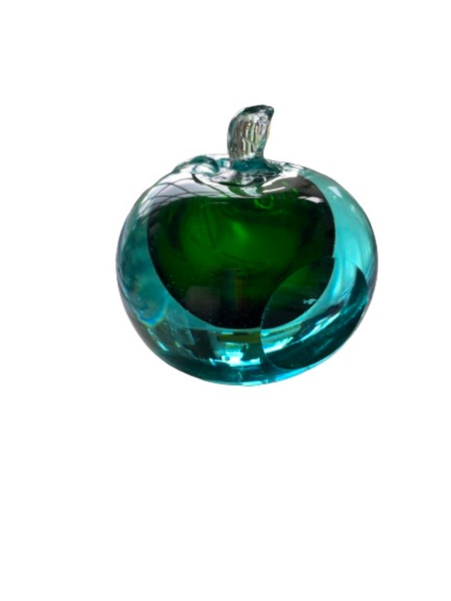Mid Century Murano Glass Apple Paperweight Aqua and Green