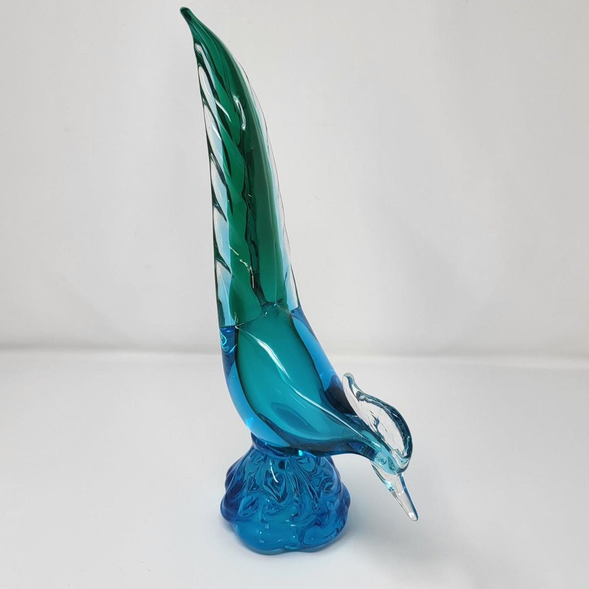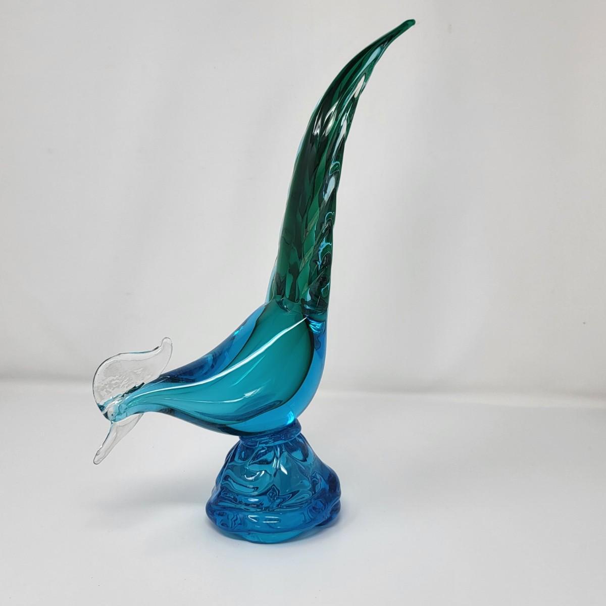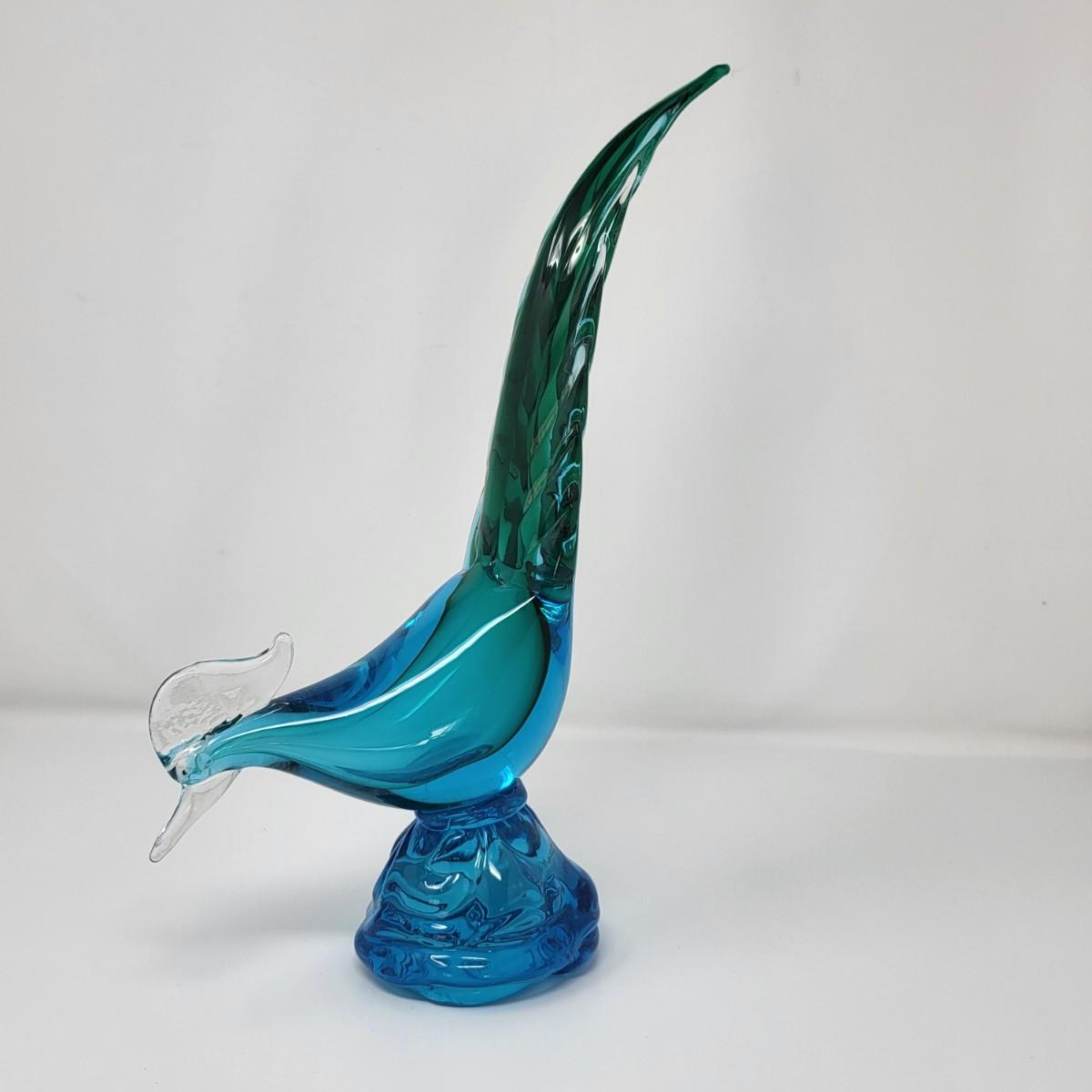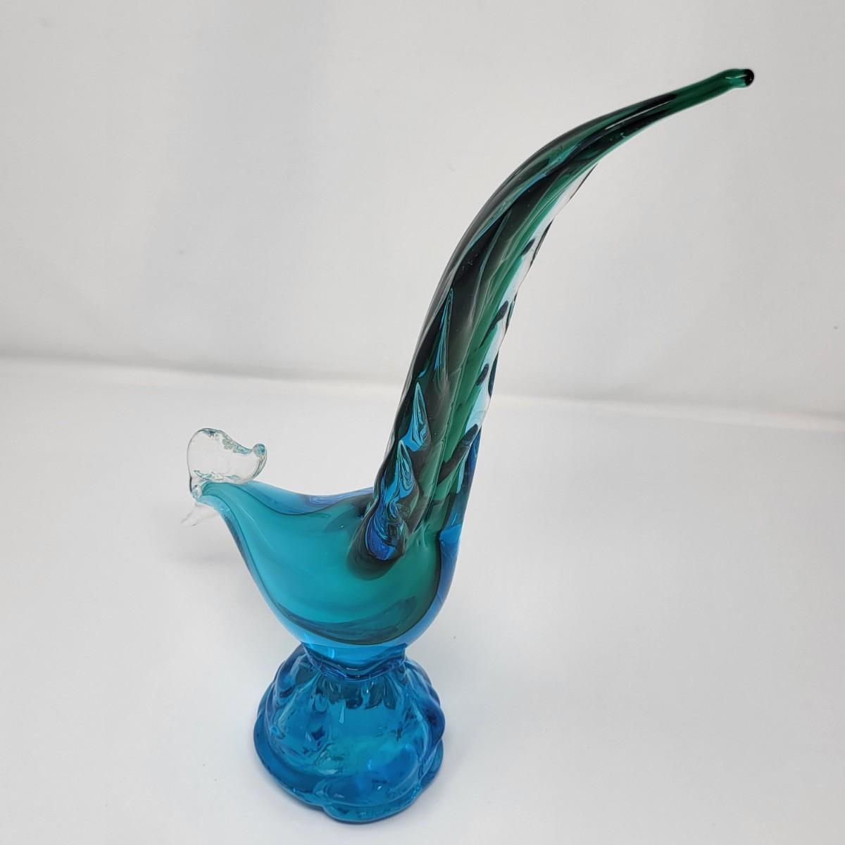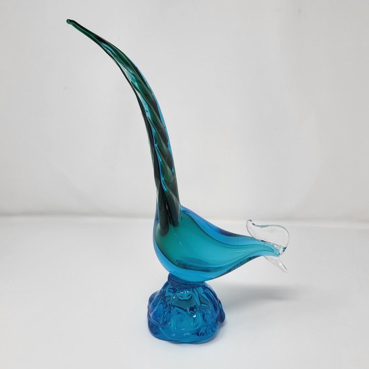 This stunning Murano glass teal/green peacock/pheasant is 13.5" tall x 3.5" wide at base. No cracks, chips or breaks. Over $200 value.