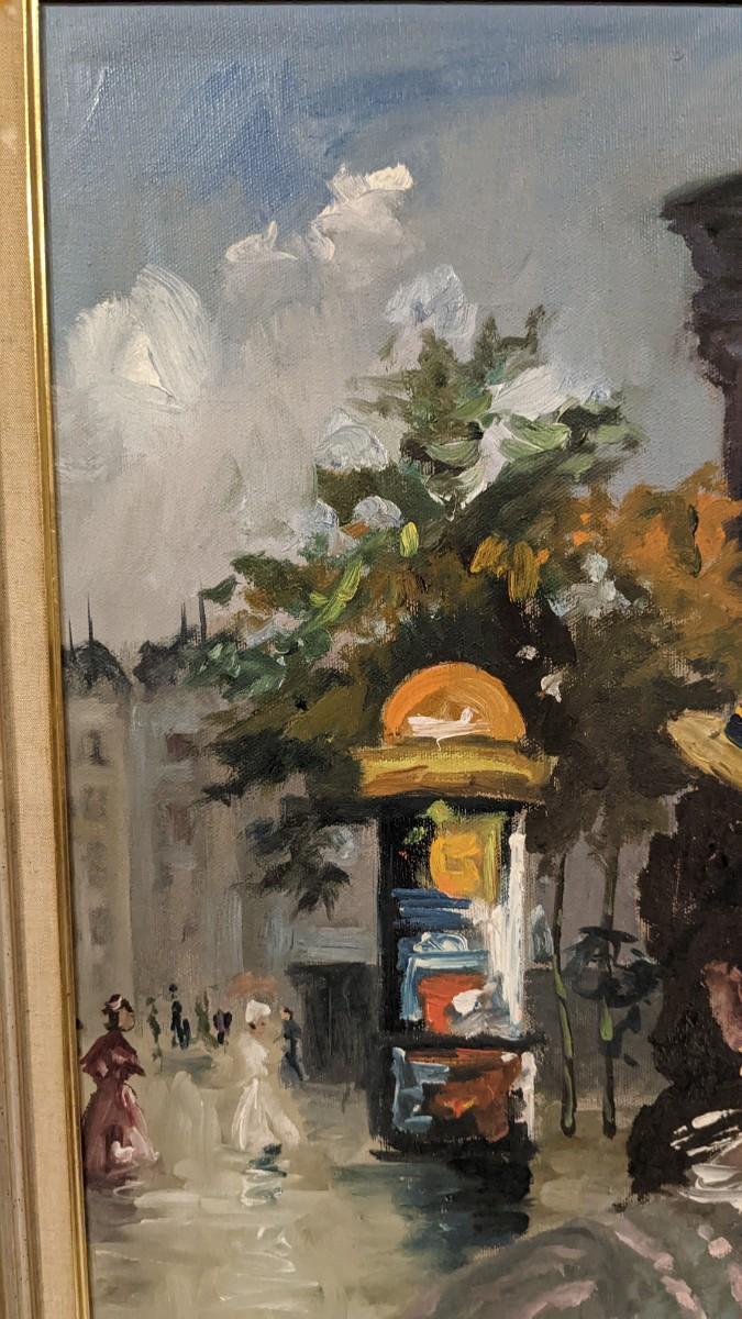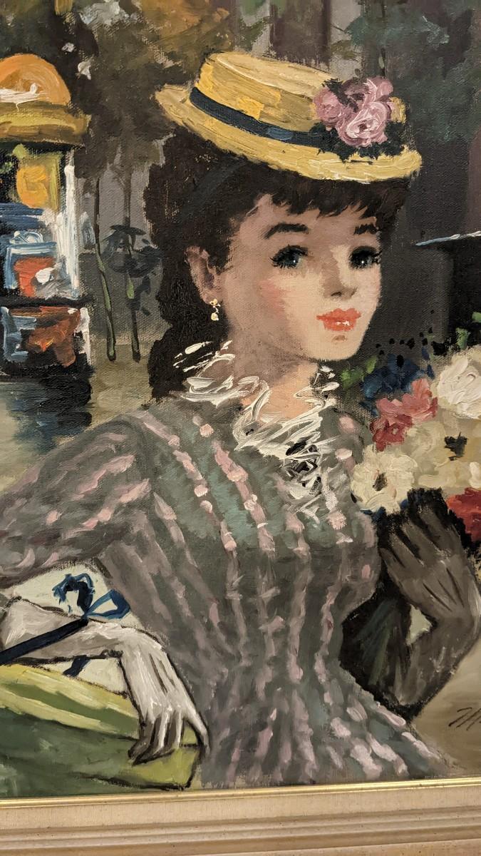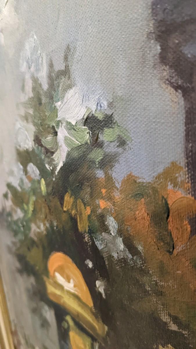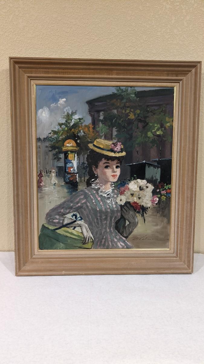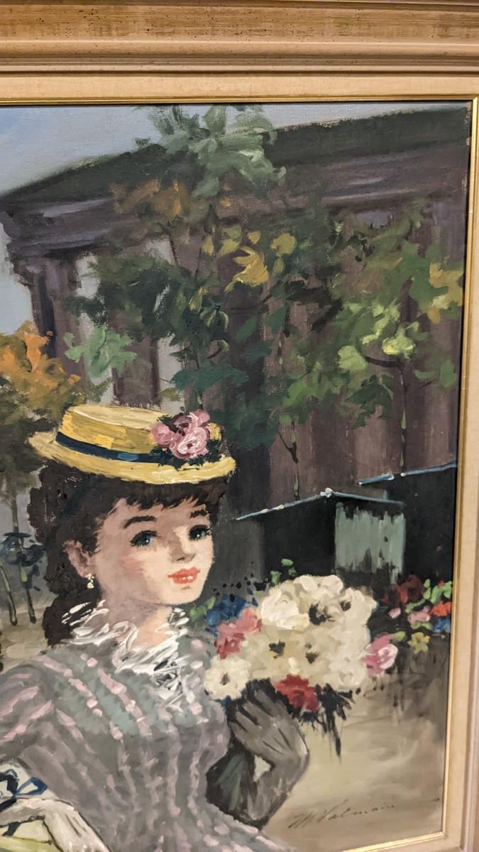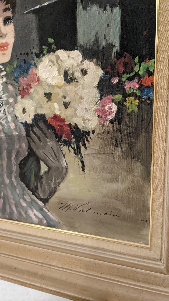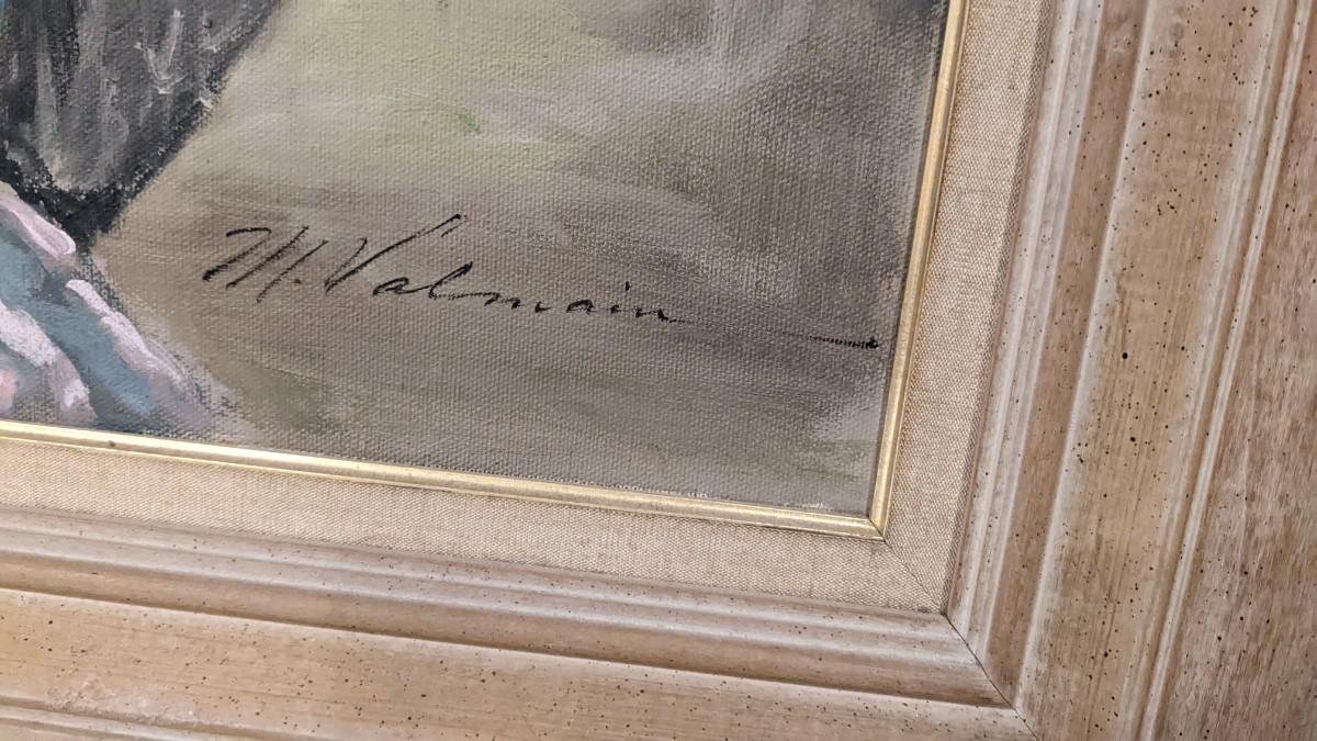 a stunning original oil painting by M. Valmain . Outer dimensions are 25 5/8' x 29 5/8". frame has minor wear showing in accordance with age. Painting is in phenomenal condition with no gouges or wear noted.
