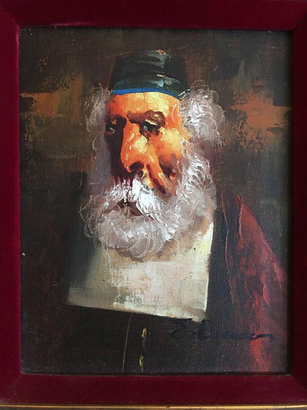 Mid Century Original Painting on Canvas of a Rabbi Signed by Artist lot 129