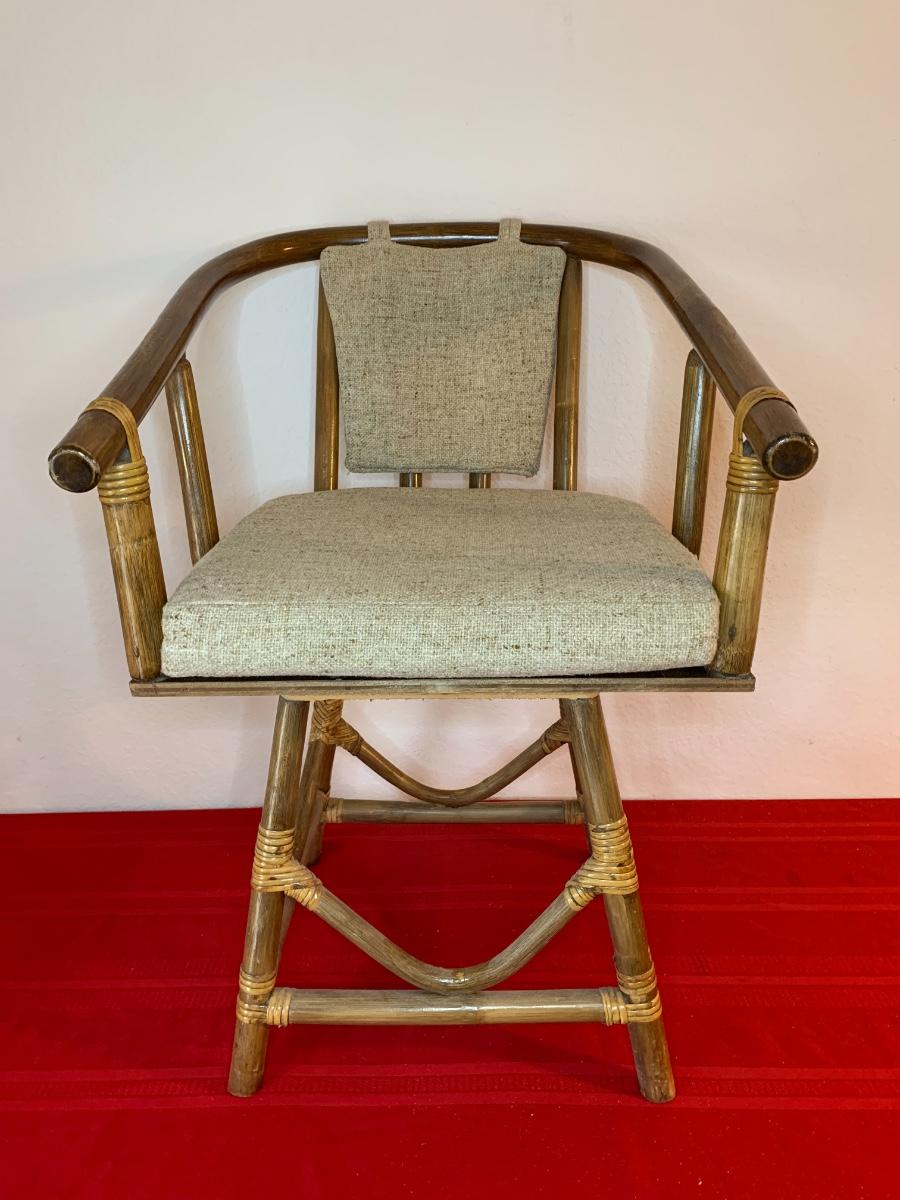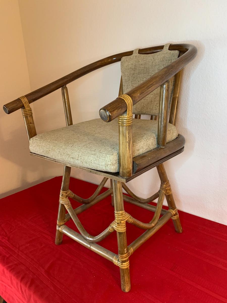 Mid Century Rattan Swivel Chair