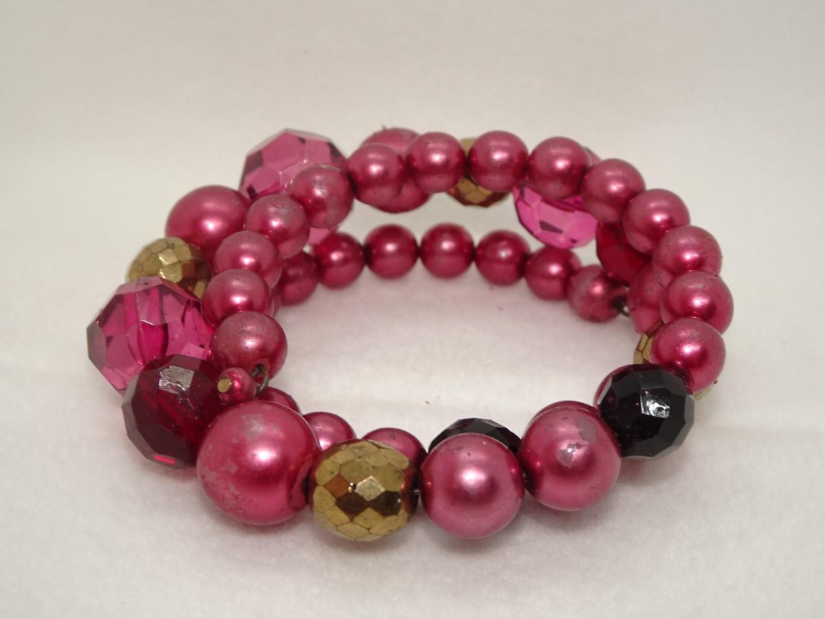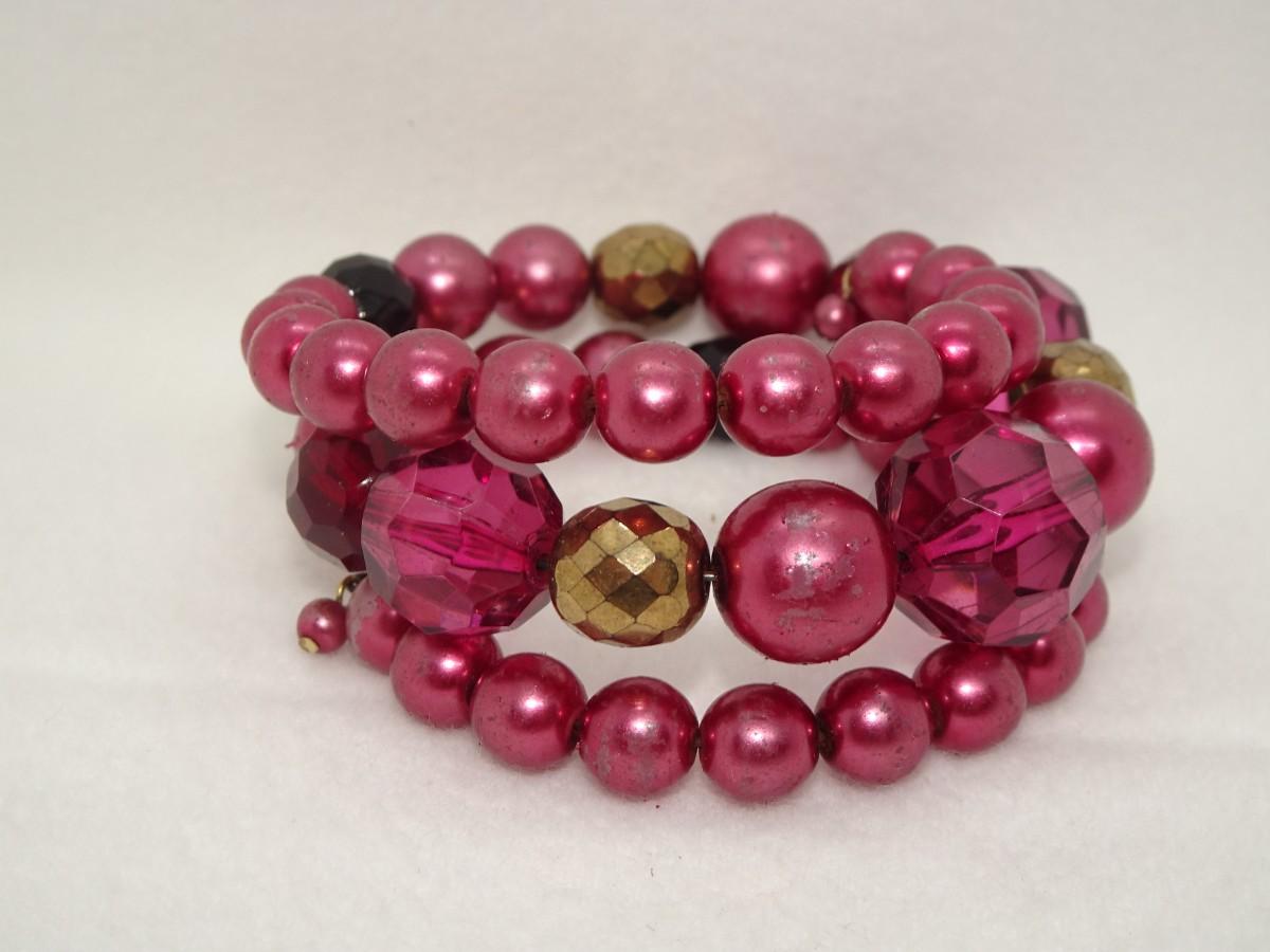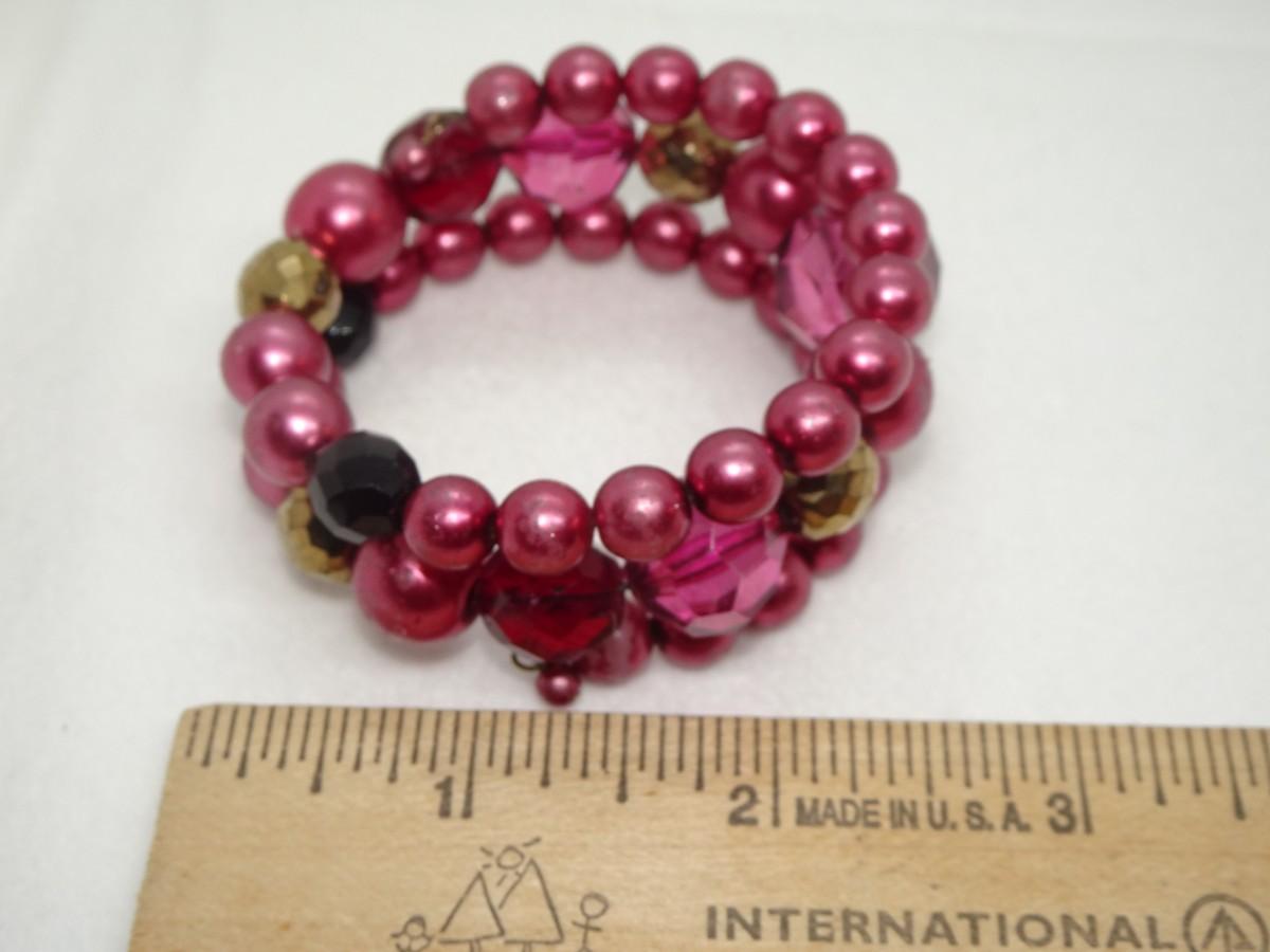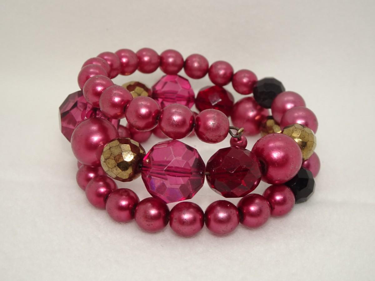 Mid Century Retro Fuchsia Red Pearl Wire Wrap Bracelet