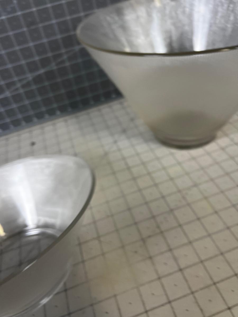 Larger has a little Chip on the Base. See photos. Great for the Party.!!!