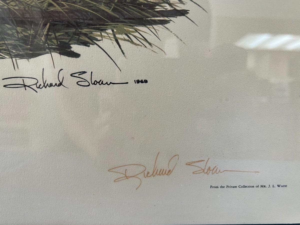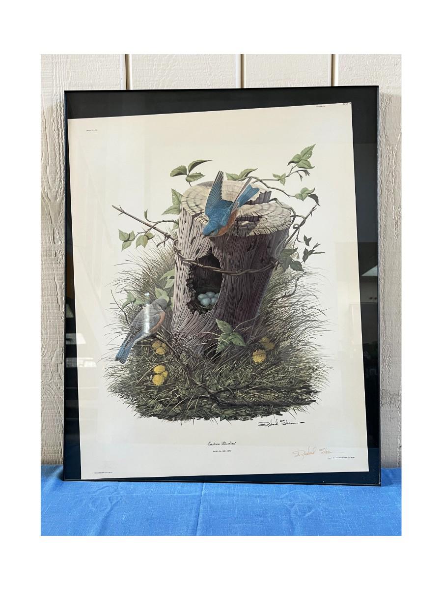 Mid Century Richard Sloan Eastern Bluebird Lithograph Plate Print Signed. Good condition. Needs to be recentered in frame.