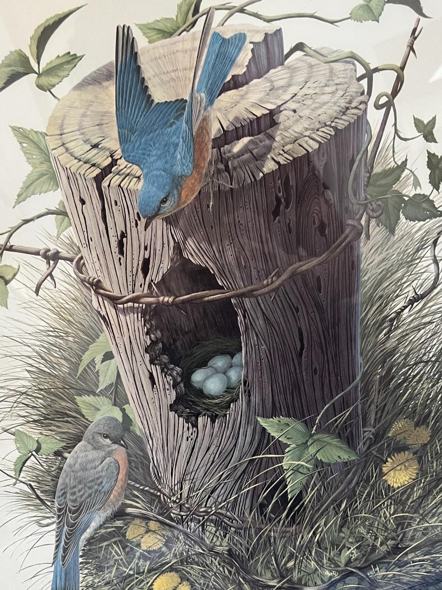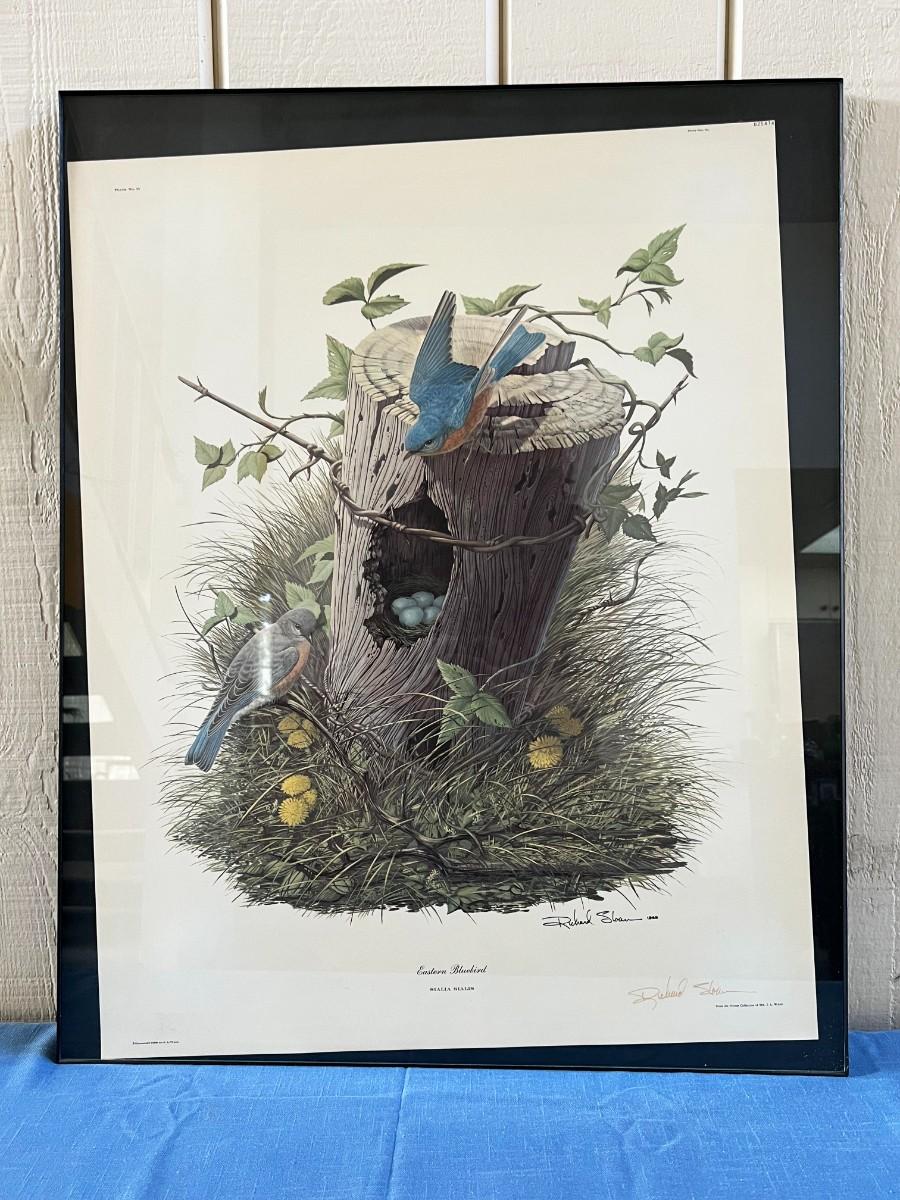 Mid Century Richard Sloan Eastern Bluebird Lithograph Plate Print Signed