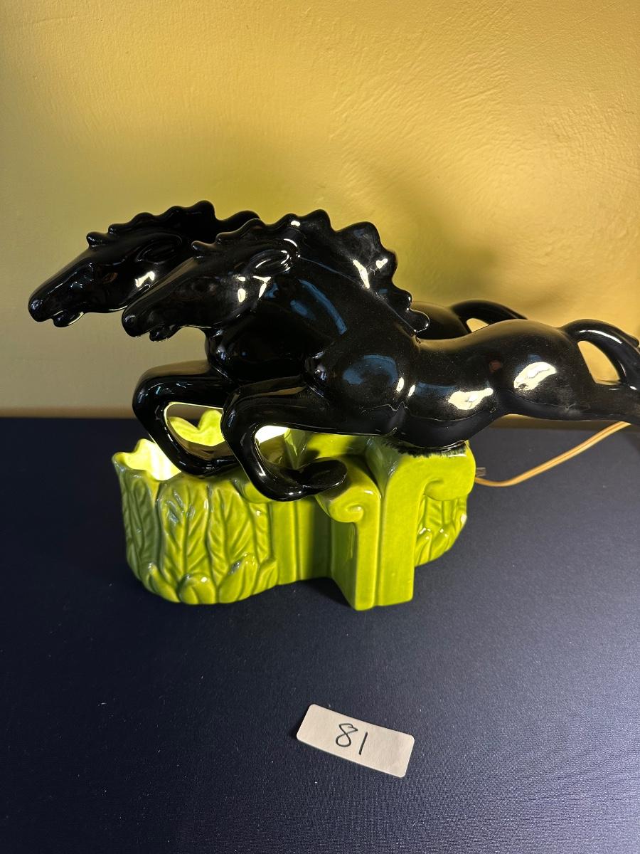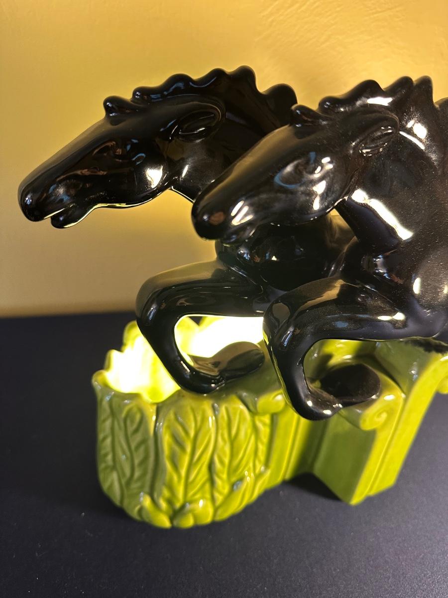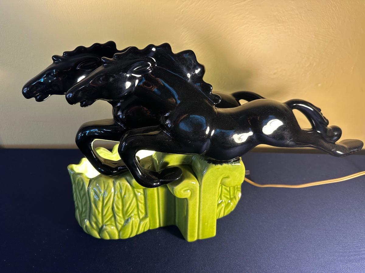 MID CENTURY ROYAL HAEGER DOUBLE STALLION TV LAMP WORKING 18" LONG