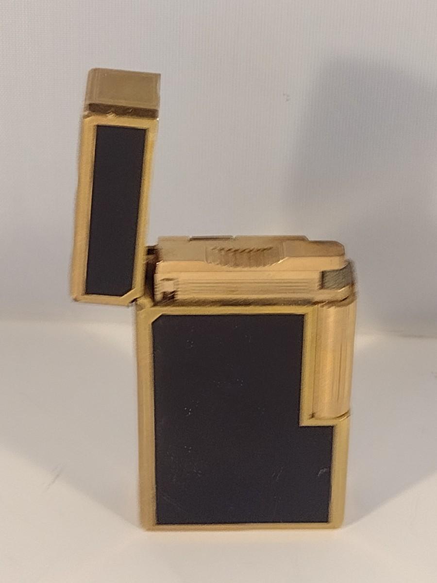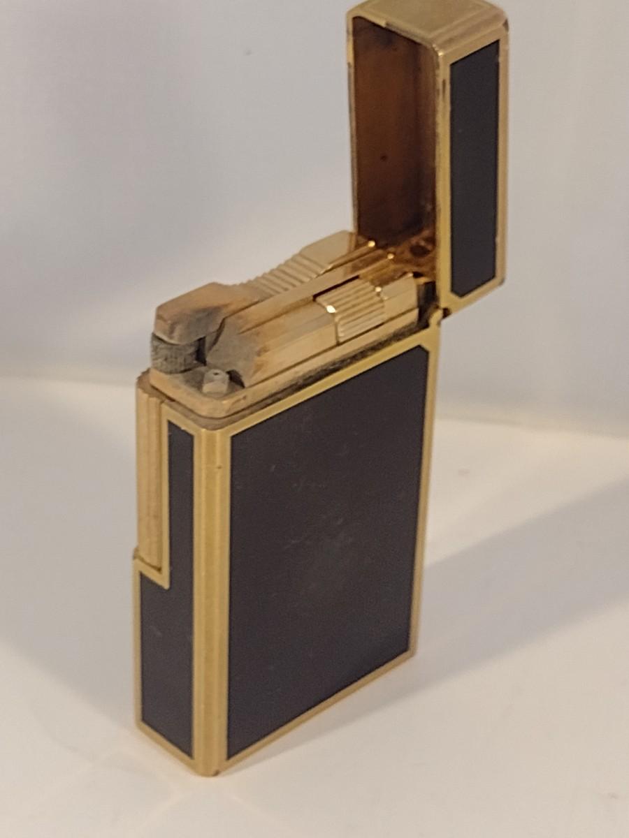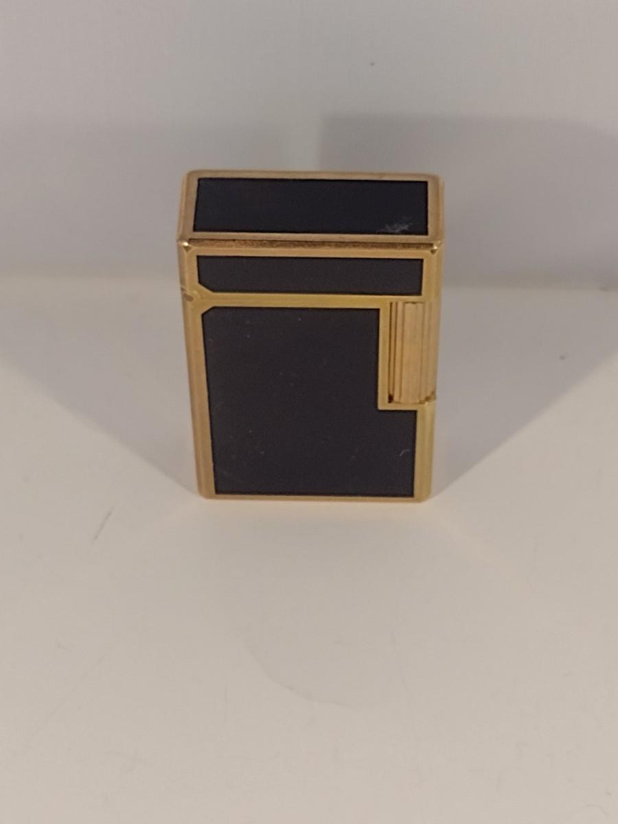 Mid Century S. T. Dupont Gas Cigarette Lighter with Black Lacquer Body and Gold-Plated Trim
