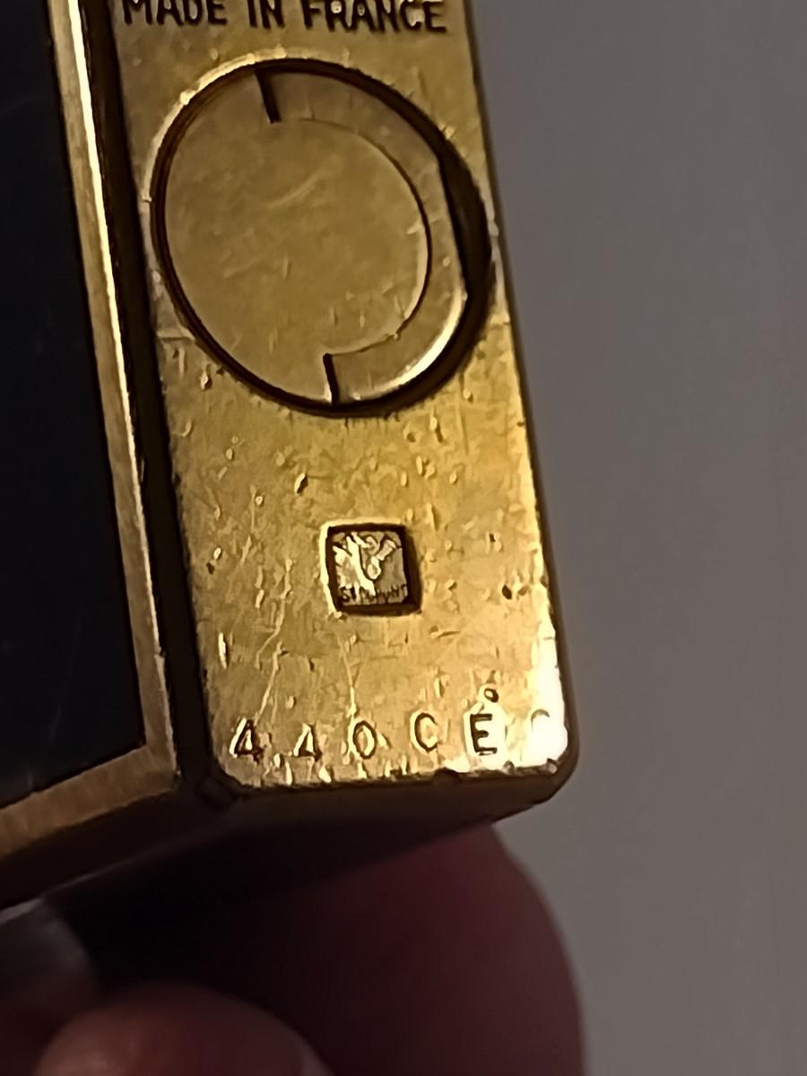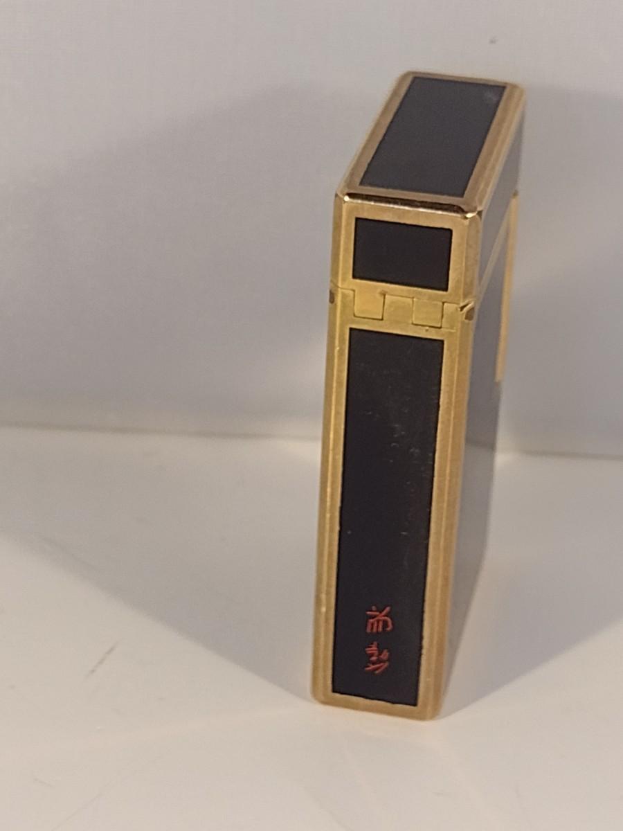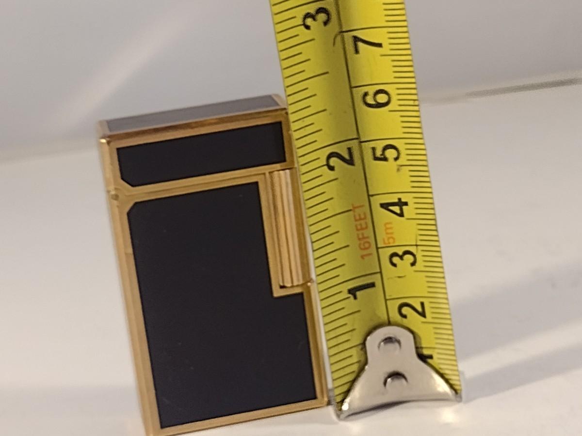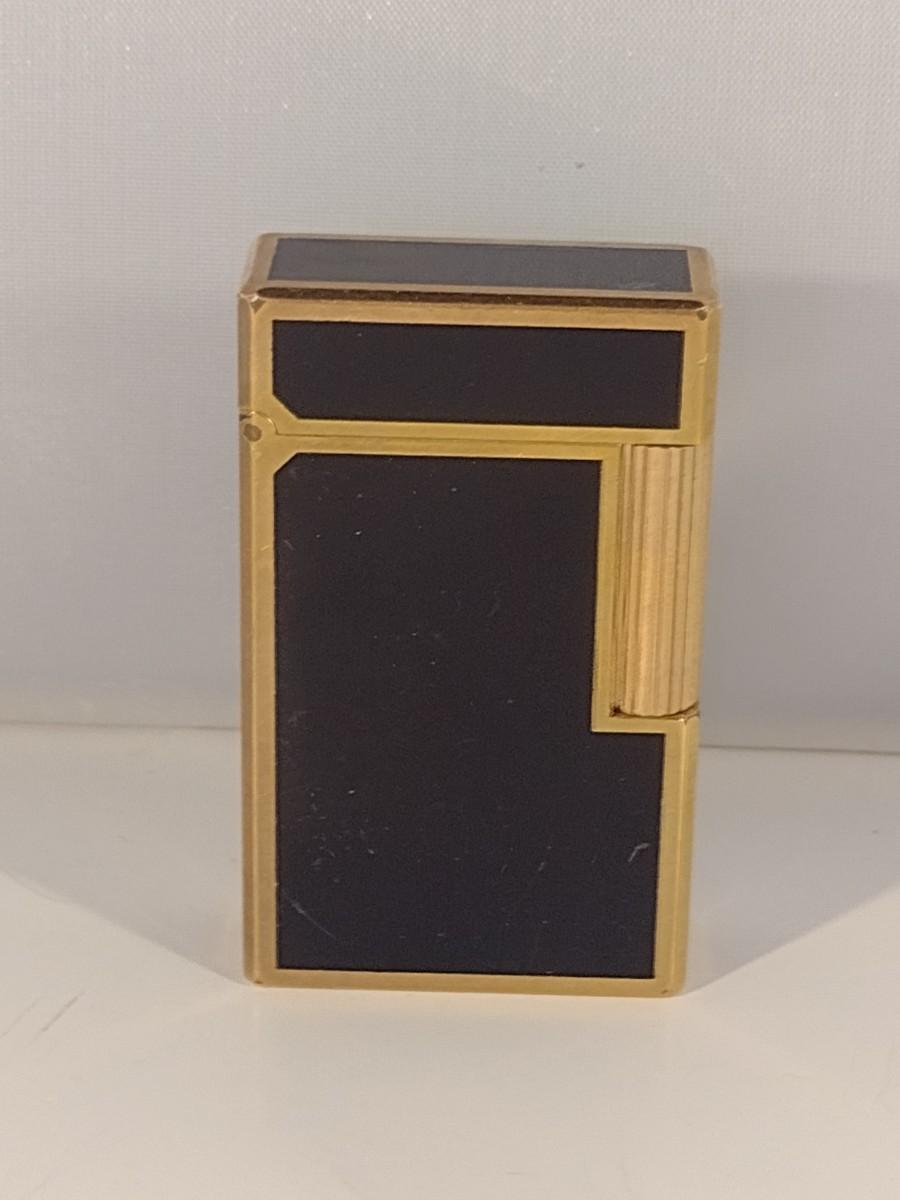 Mid Century S. T. Dupont Gas Cigarette Lighter with Black Lacquer Body and Gold-Plated Trim