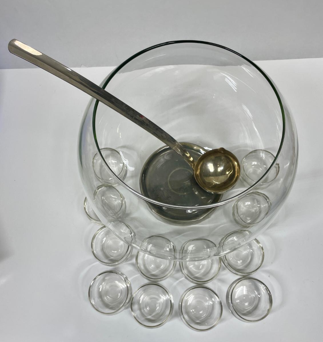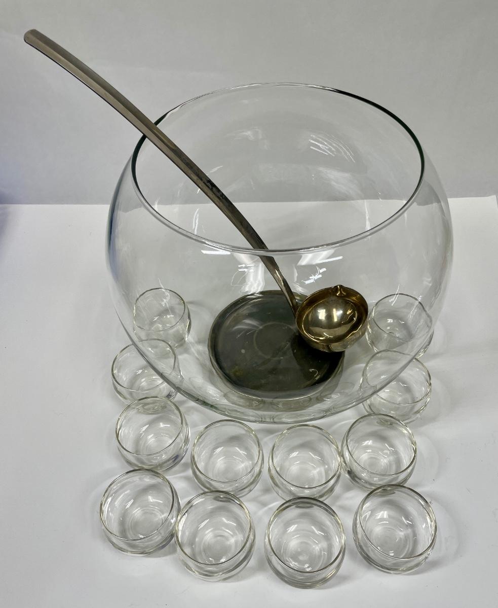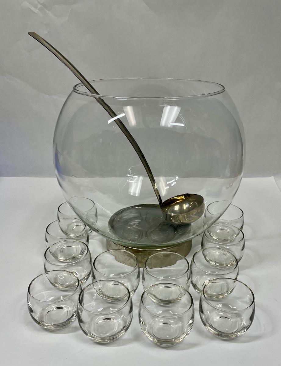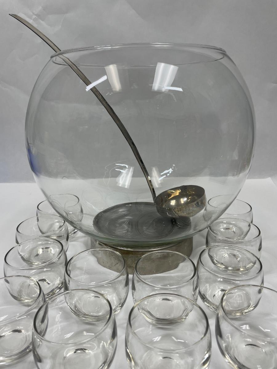 Mid Century set - Bubble Punch Bowl , 12 Bubble Cups & Silver-plated Laddie