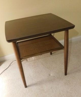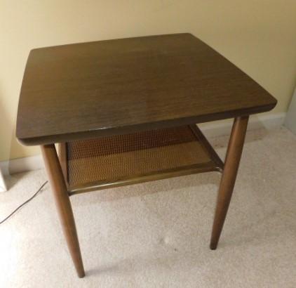 Mid Century Side Table with Rush Stretcher Shelf 22"x22"x22"