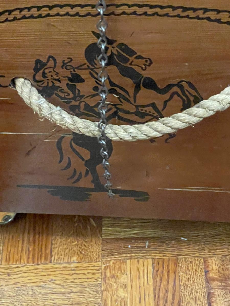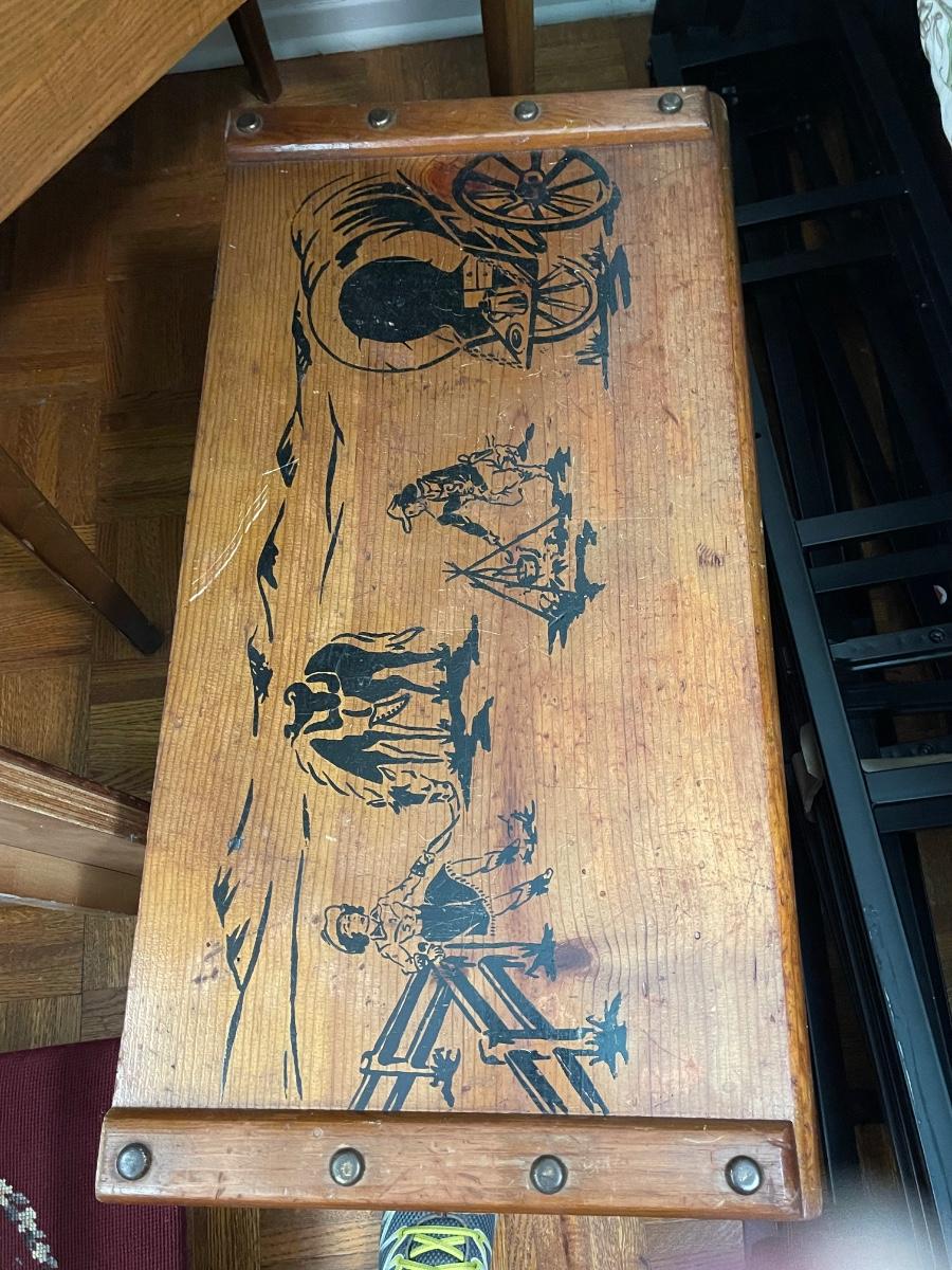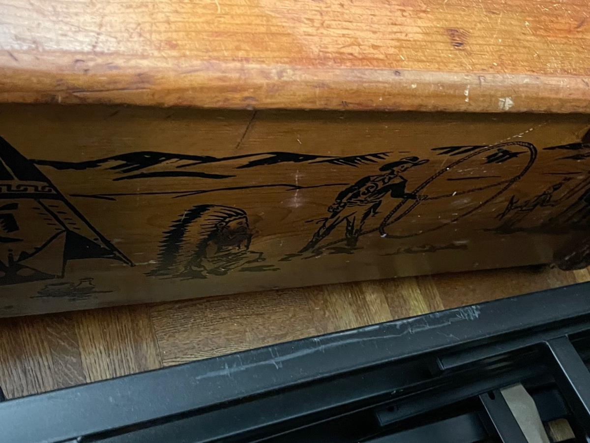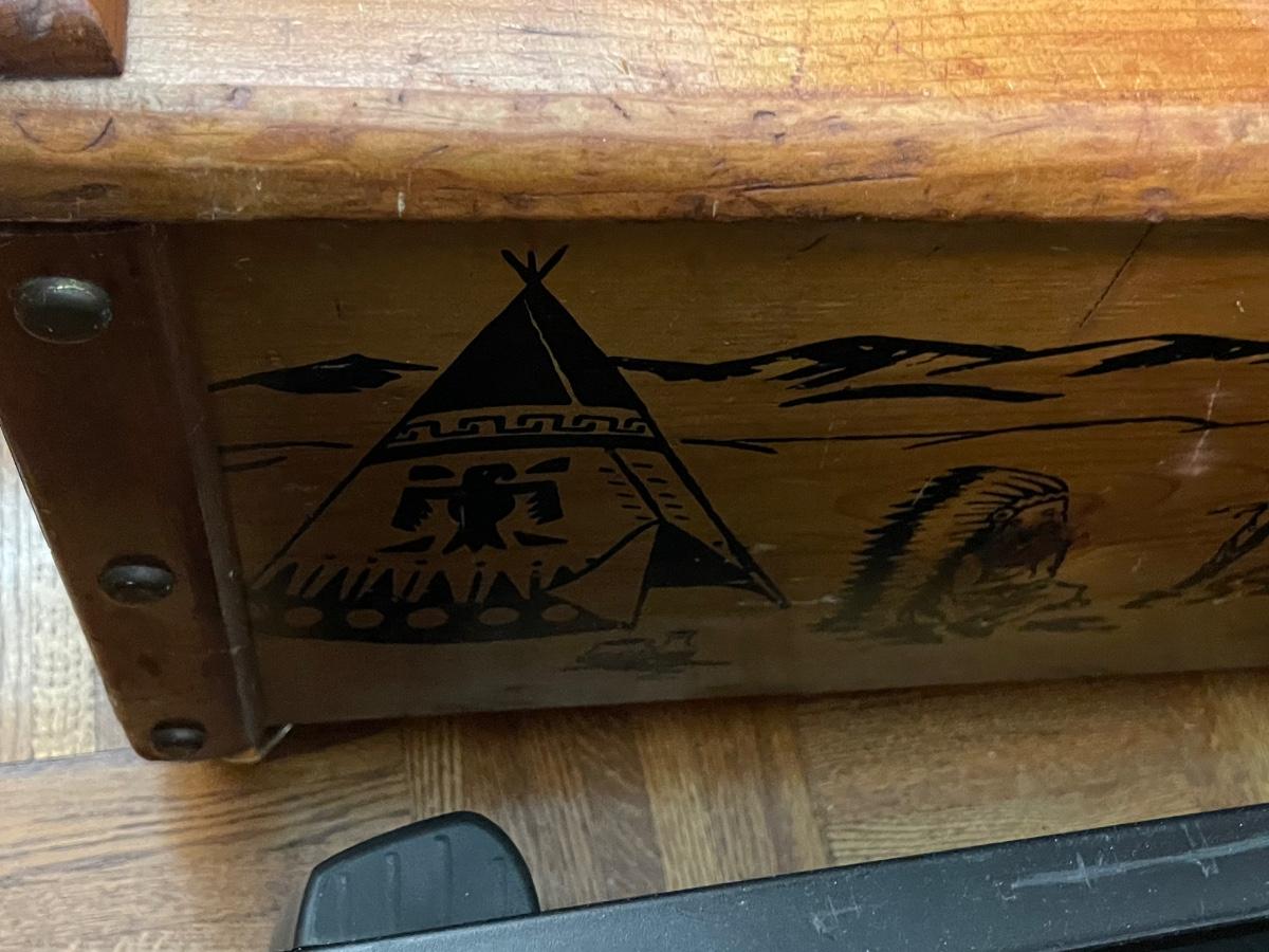 Mid Century Solid Maple Wood Painted Toy Box-Cowboys and Indians