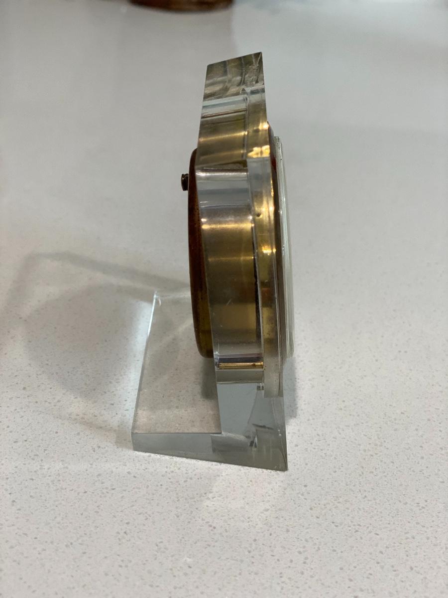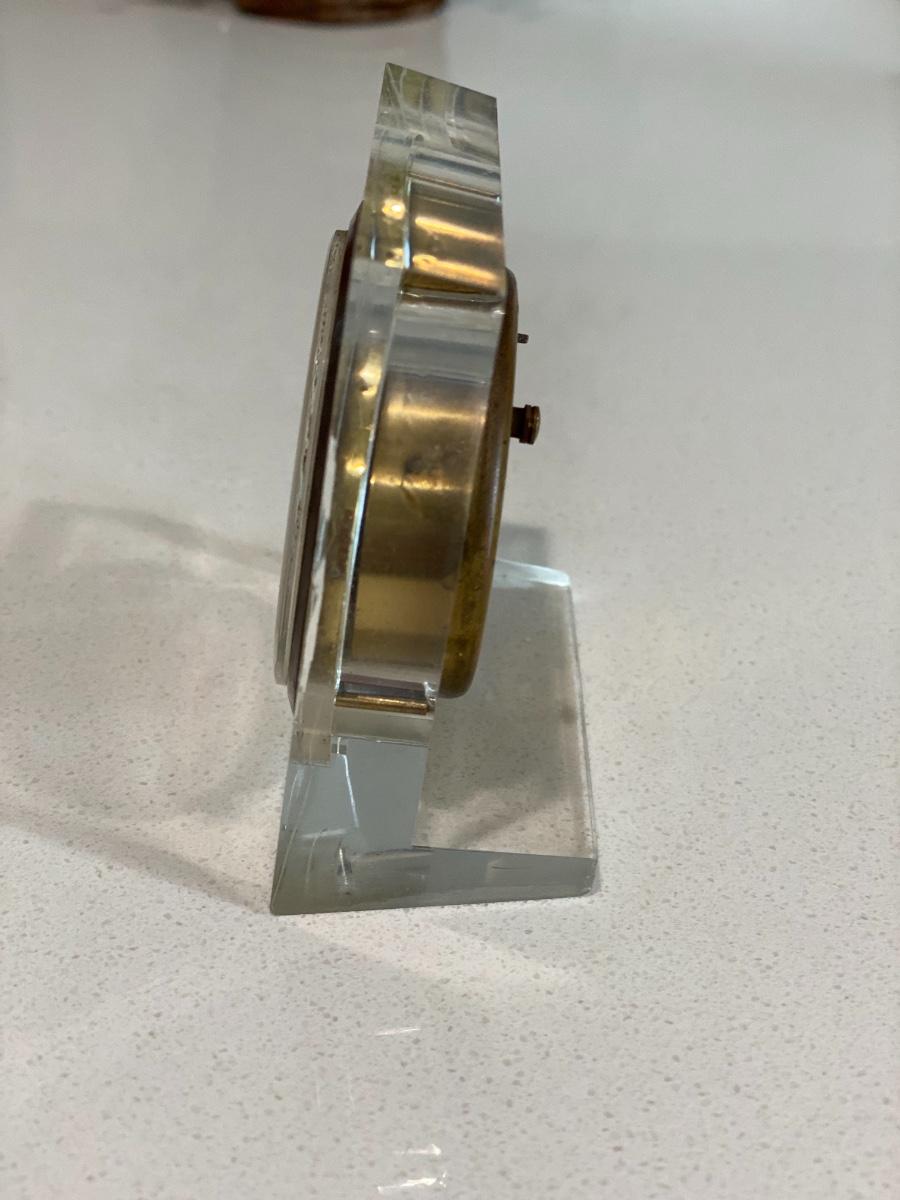 Mid Century Square Clear Lucite Acrylic Seth Thomas Desk Alarm Clock GERMANY