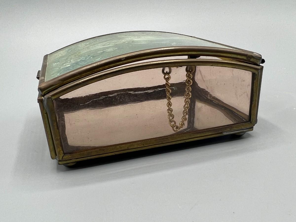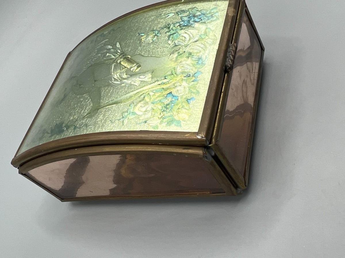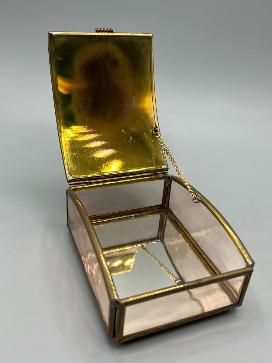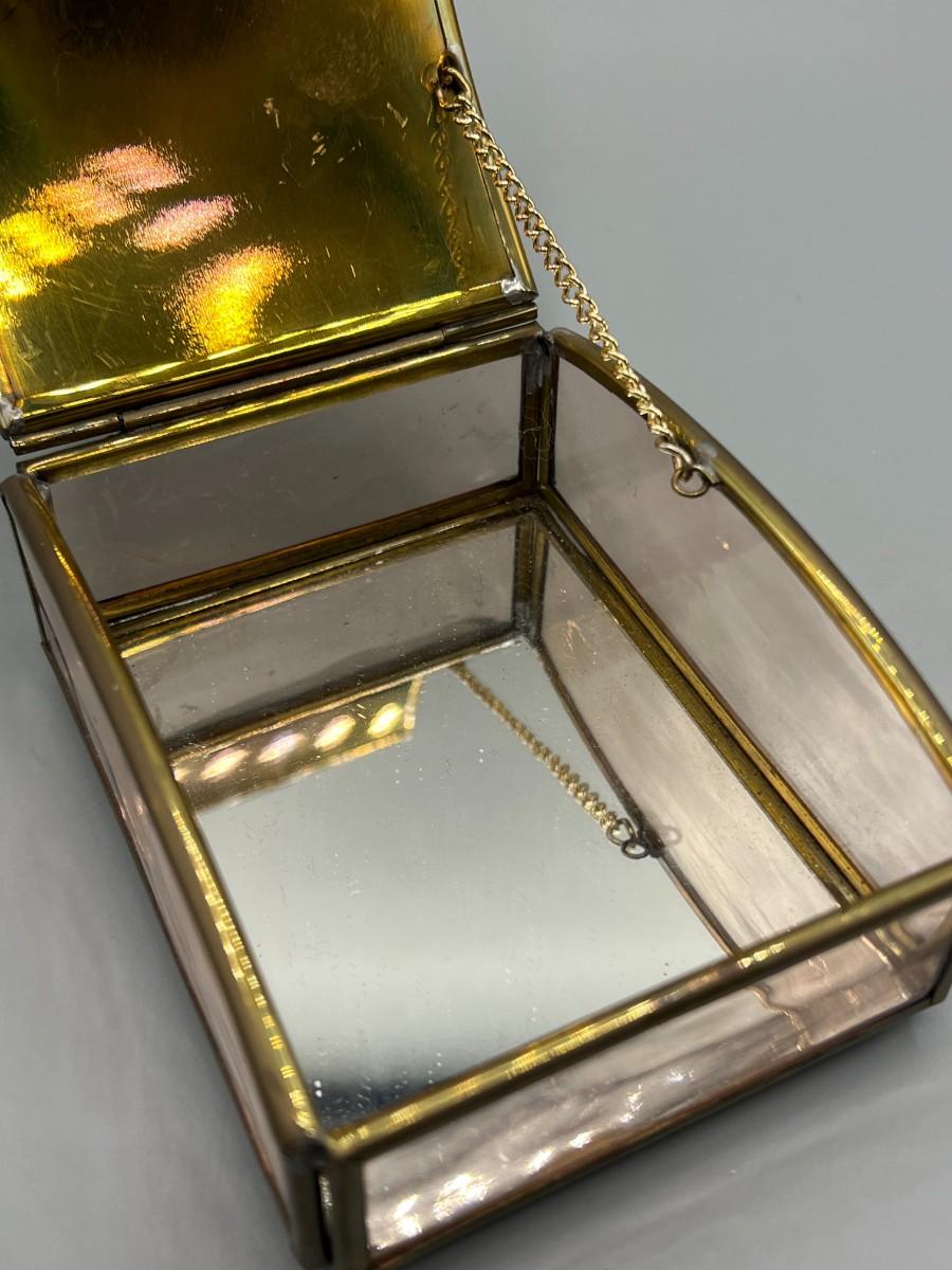 Mid Century Styled Glass Mirrored Cherub Angel Jewelry Trinket Box, there is no significant damage to the box and is in good displayable condition. Check pictures for more details and for sizing.