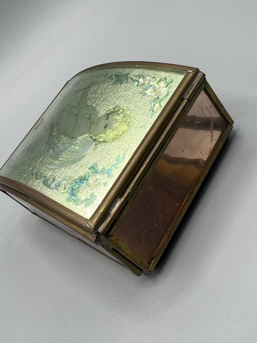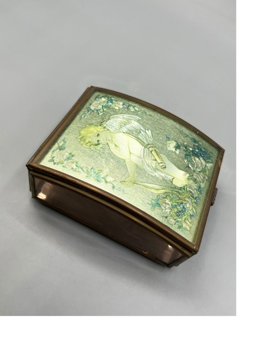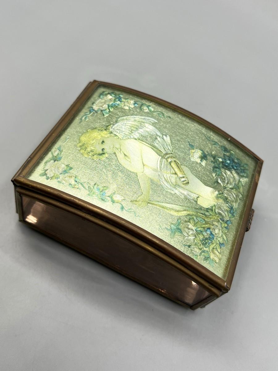 Mid Century Styled Glass Mirrored Cherub Angel Jewelry Trinket Box