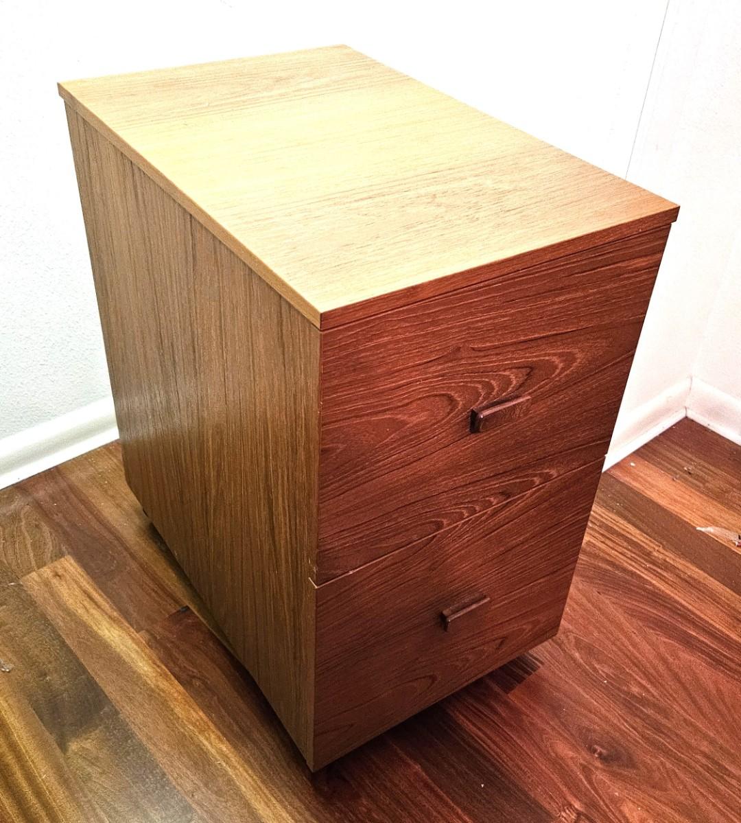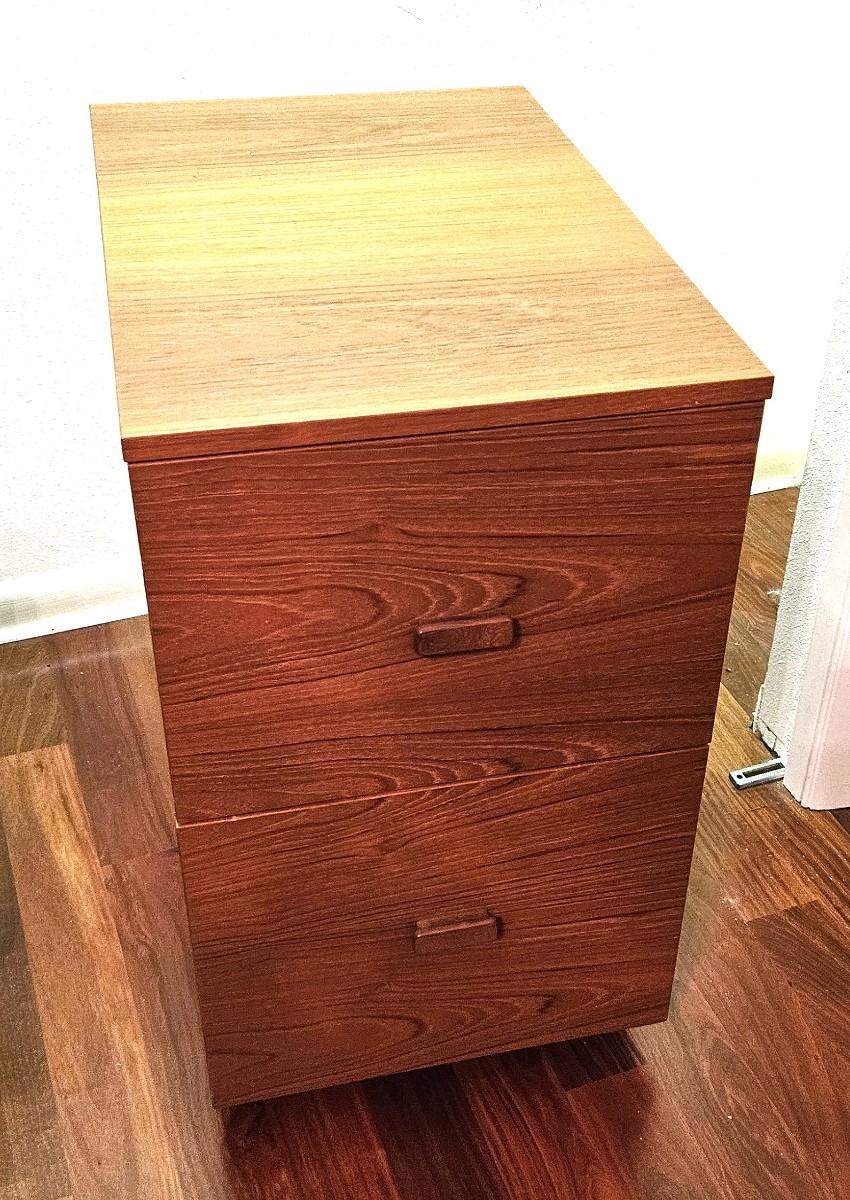 Mid Century Teak Rolling File Cabinet