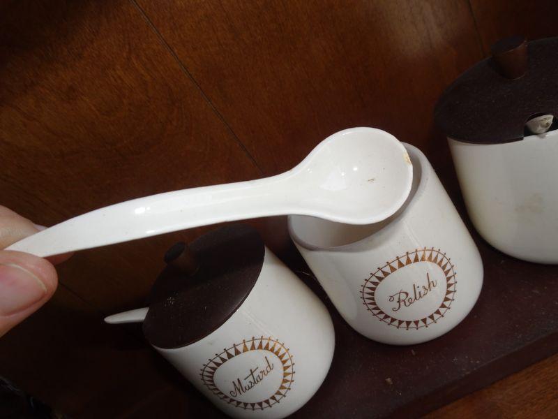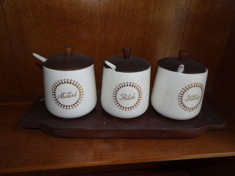 Mid Century Teak Wood Mustard, Relish, Ketchup holders