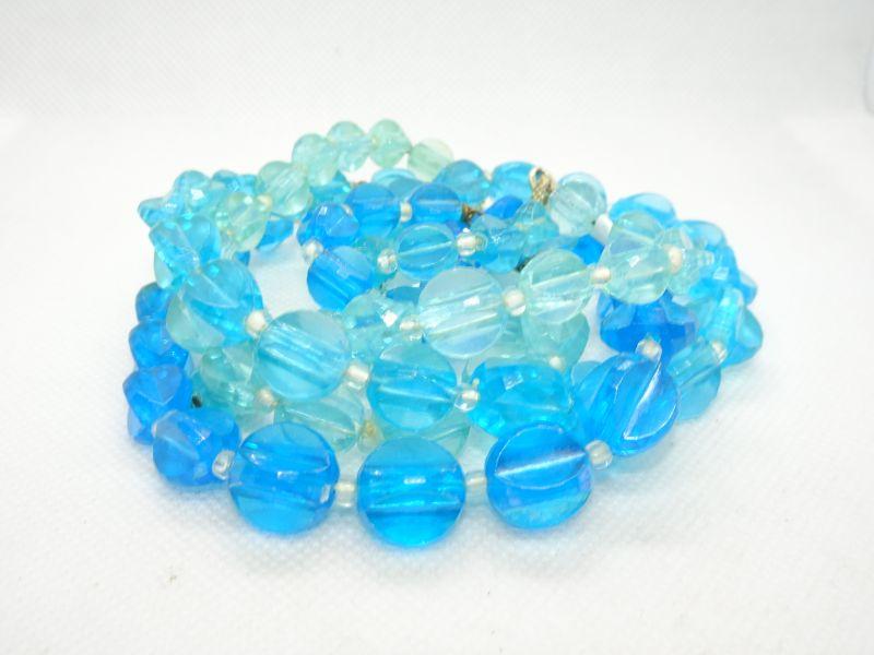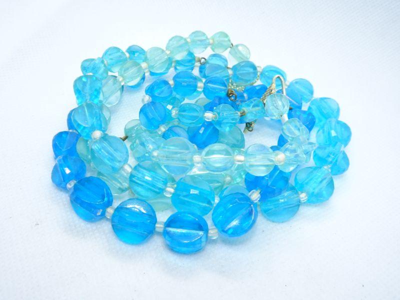 Mid Century Teal Chunk Beaded Necklace - Plastic