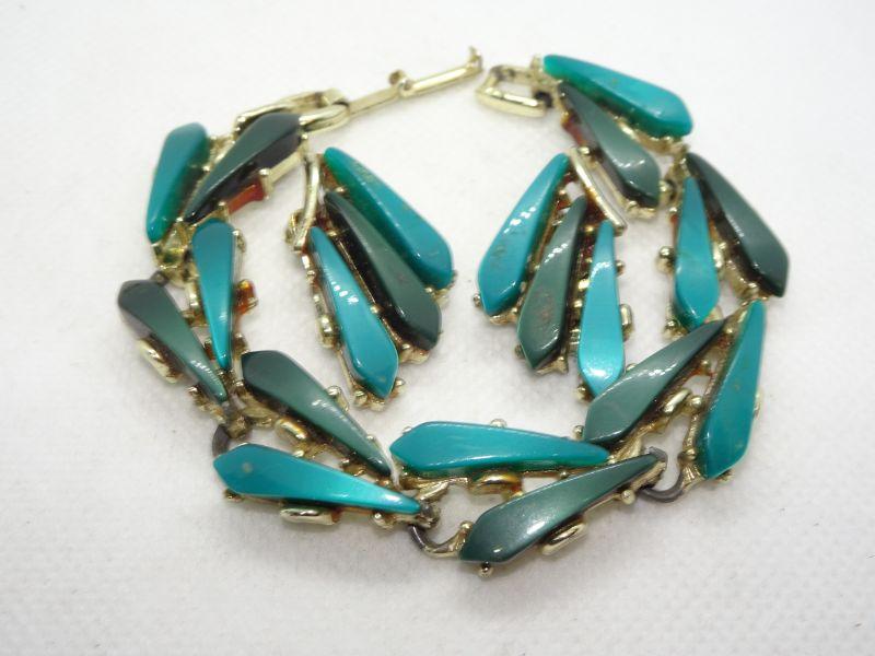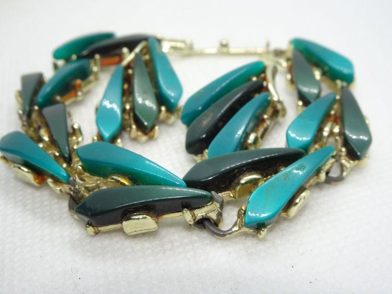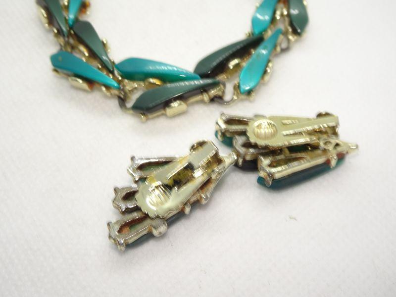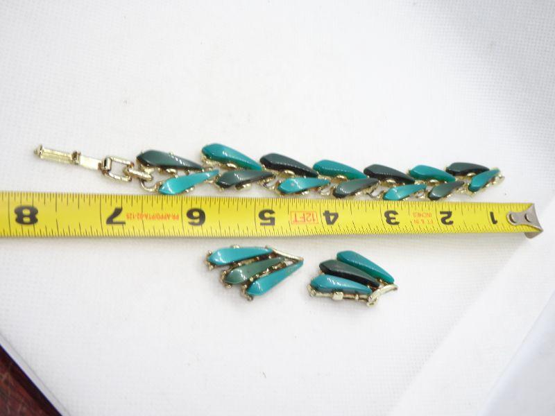 MId Century Thermo Plastic Teal Green Bracelet & Matching Clip Earrings