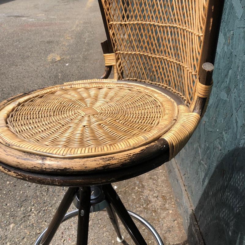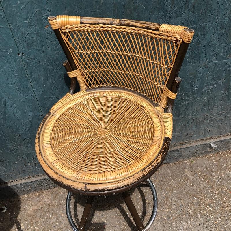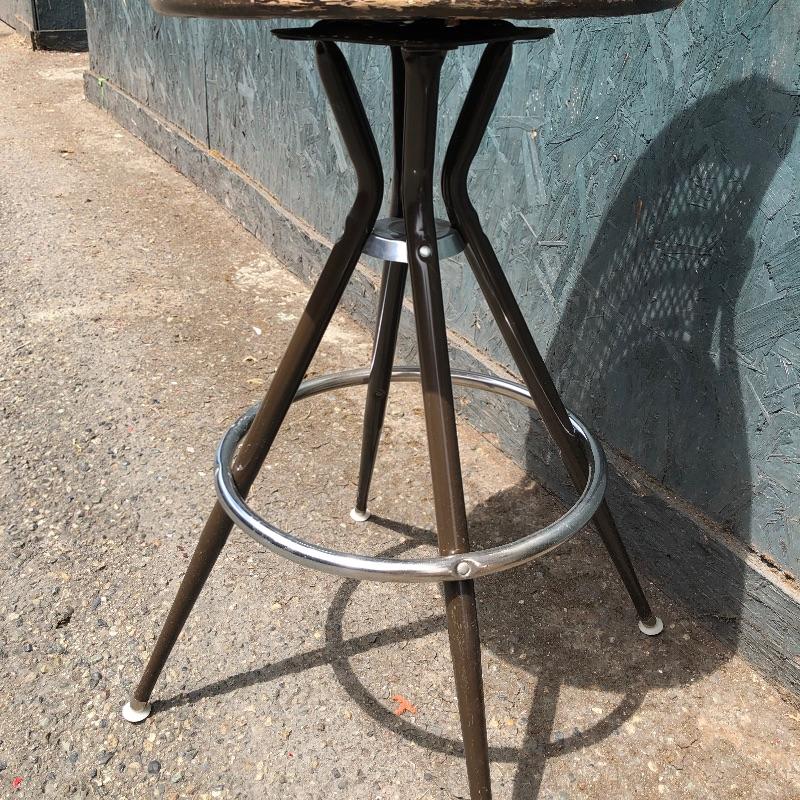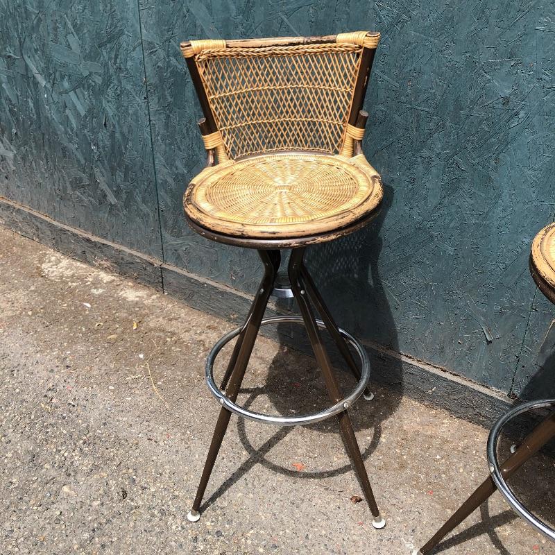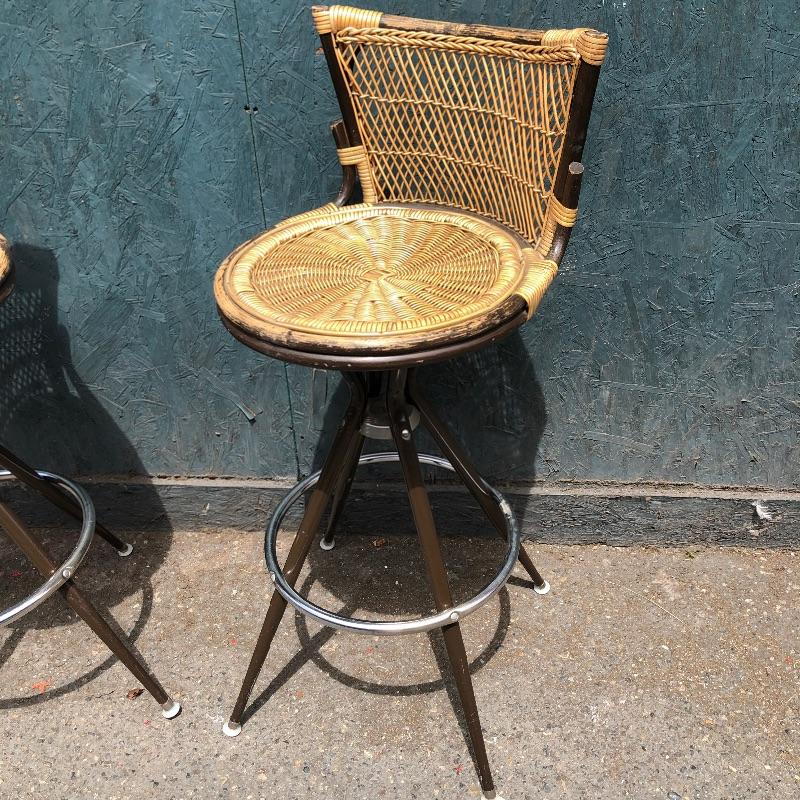 Very fun and funky pair of barstools! They swivel and are in great shape! The legas are painted metal.