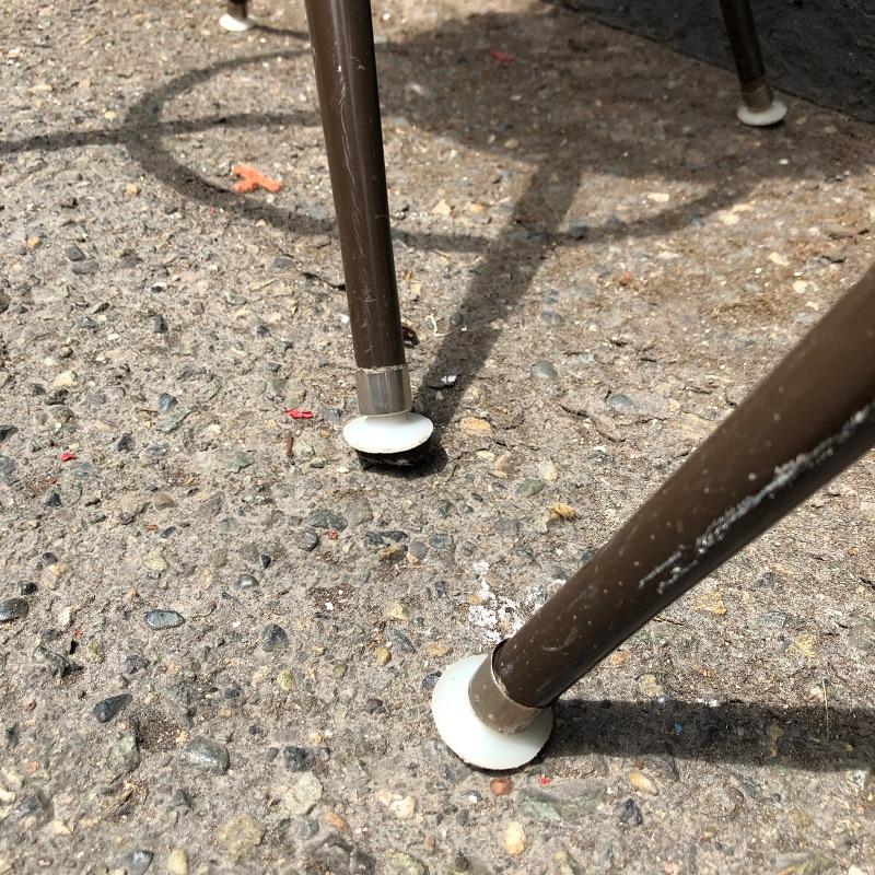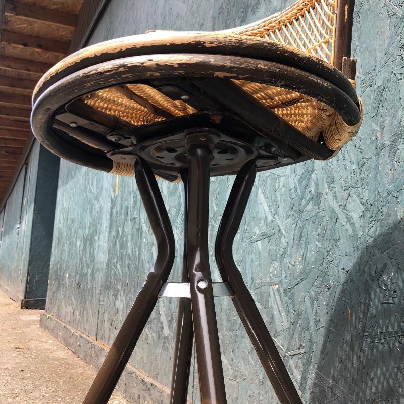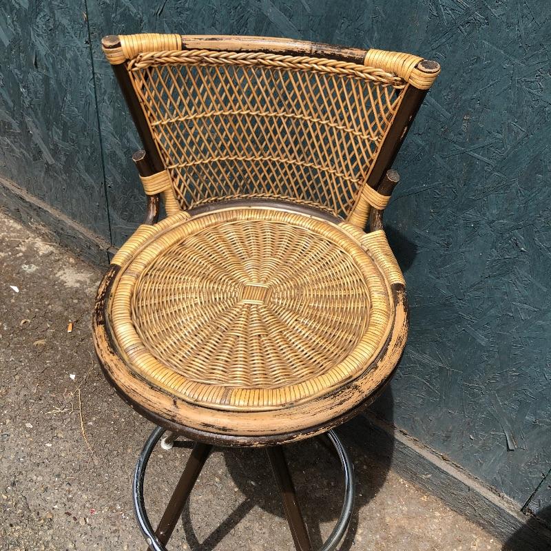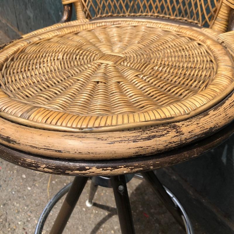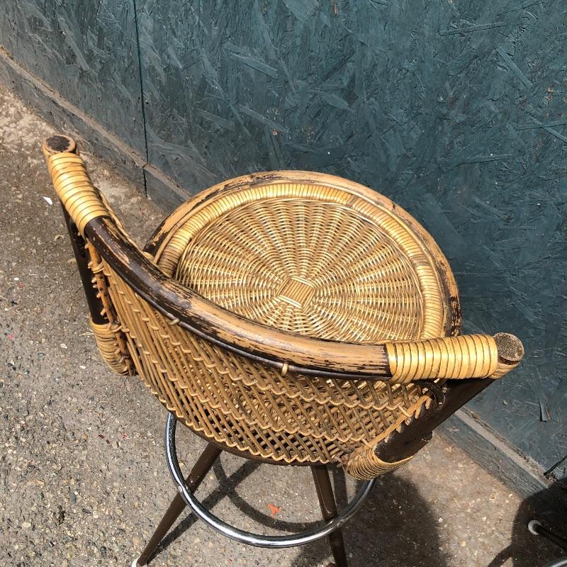 Very fun and funky pair of barstools! They swivel and are in great shape! The legas are painted metal.