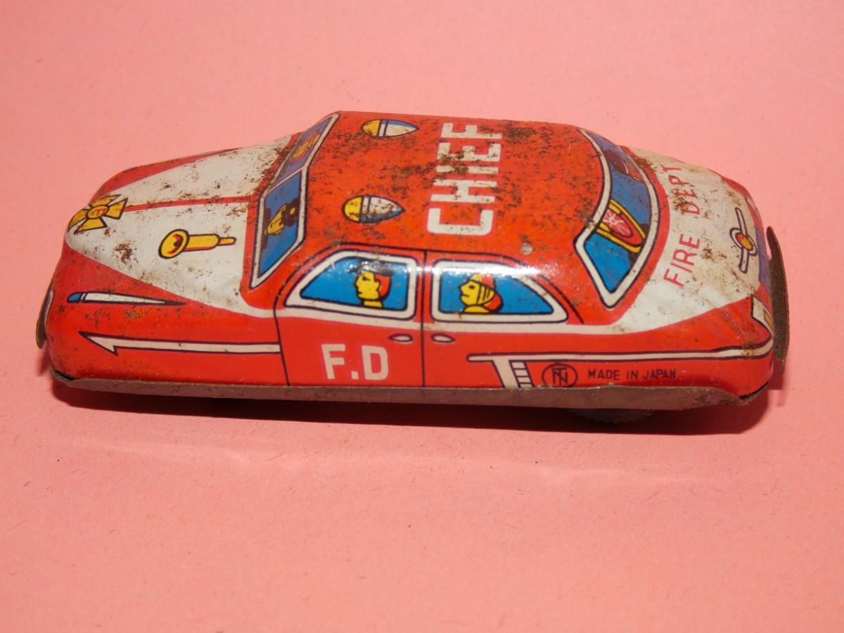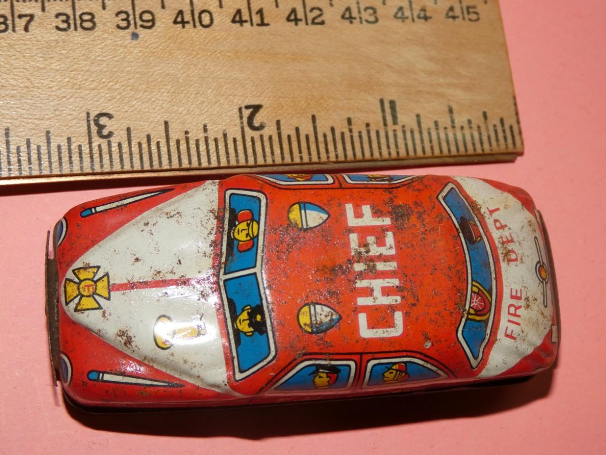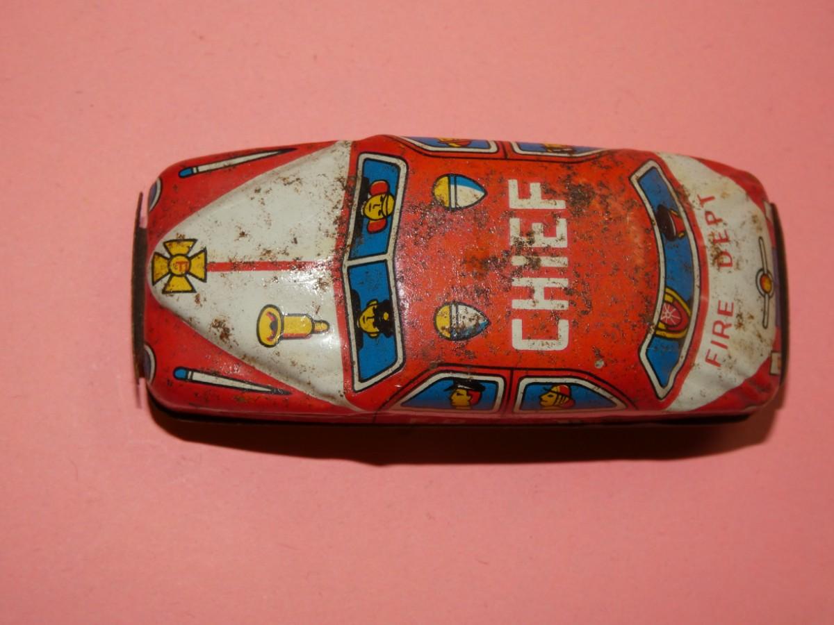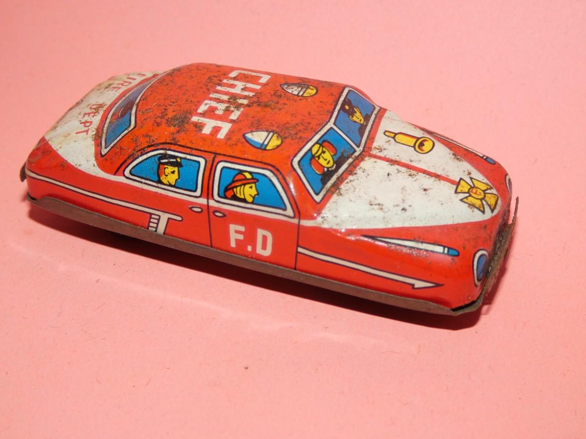Mid Century Tin Lithograph Fire Dept, Fire Chief Car - rusted