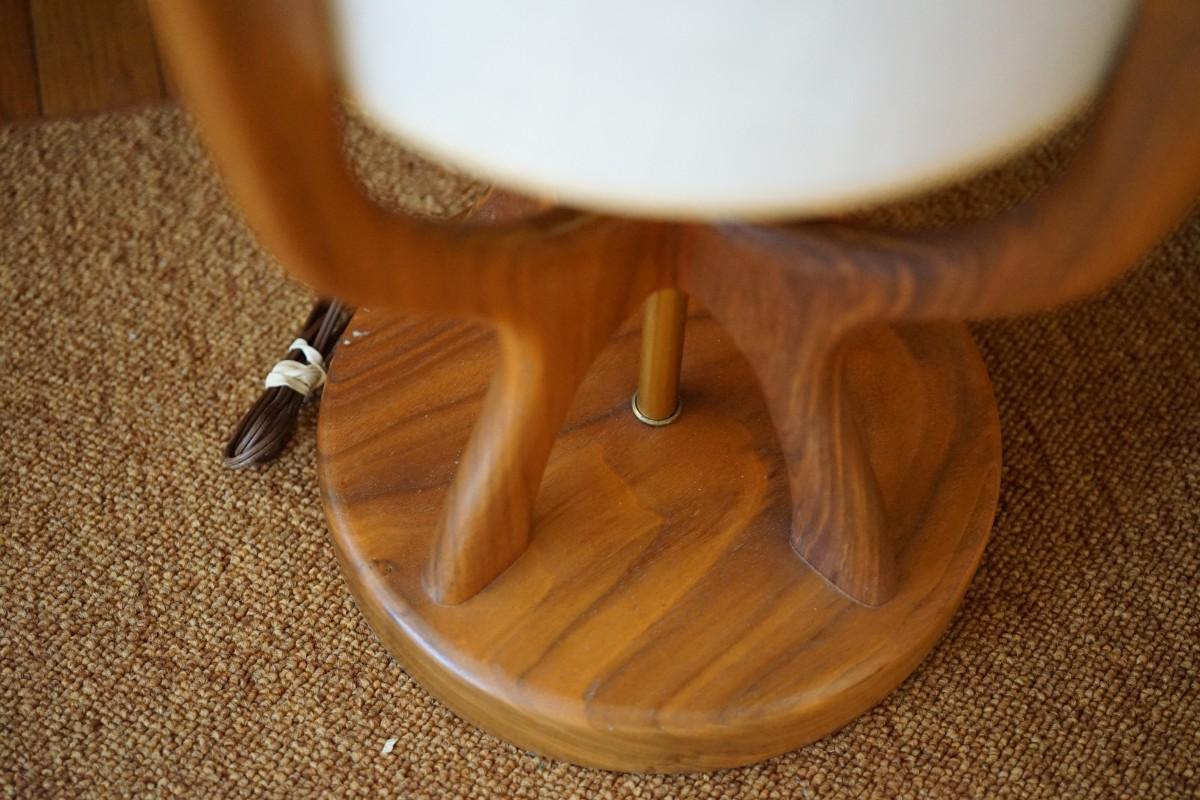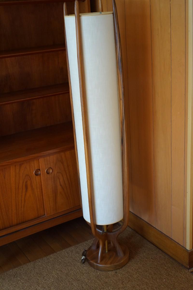 MID CENTURY TOWER LAMP WITH FABRIC SHADE & TEAK 5FT.