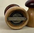 Here is a turned wood 'mushroom' salt shaker and peppermill bearing the Tre Spade mark from the Italian maker circa 1950s...Just two inches tall...This vintage pair are in good condition with some normal use.