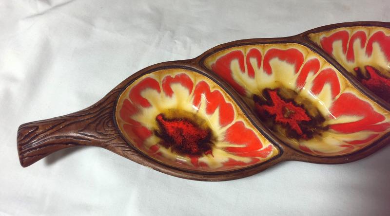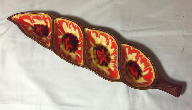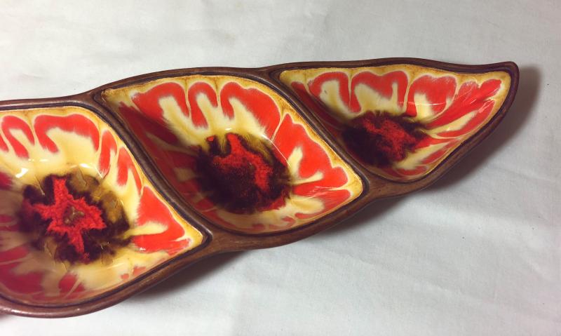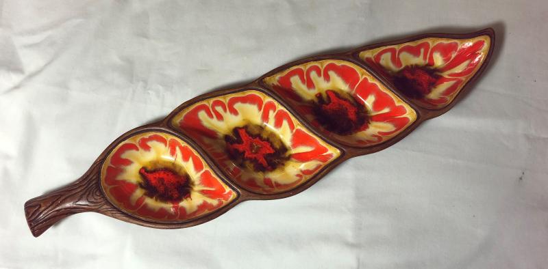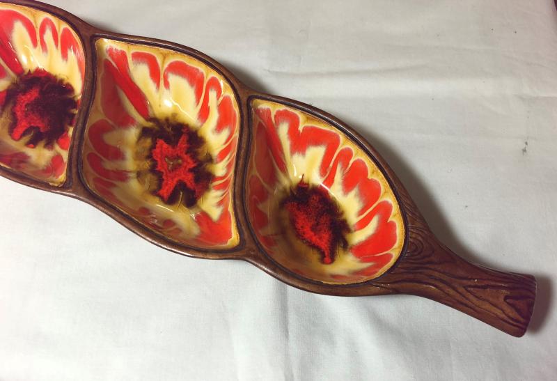 Good condition on this vintage 20" long snack tray from the sixties..this California pottery is from Treasure Craft...
