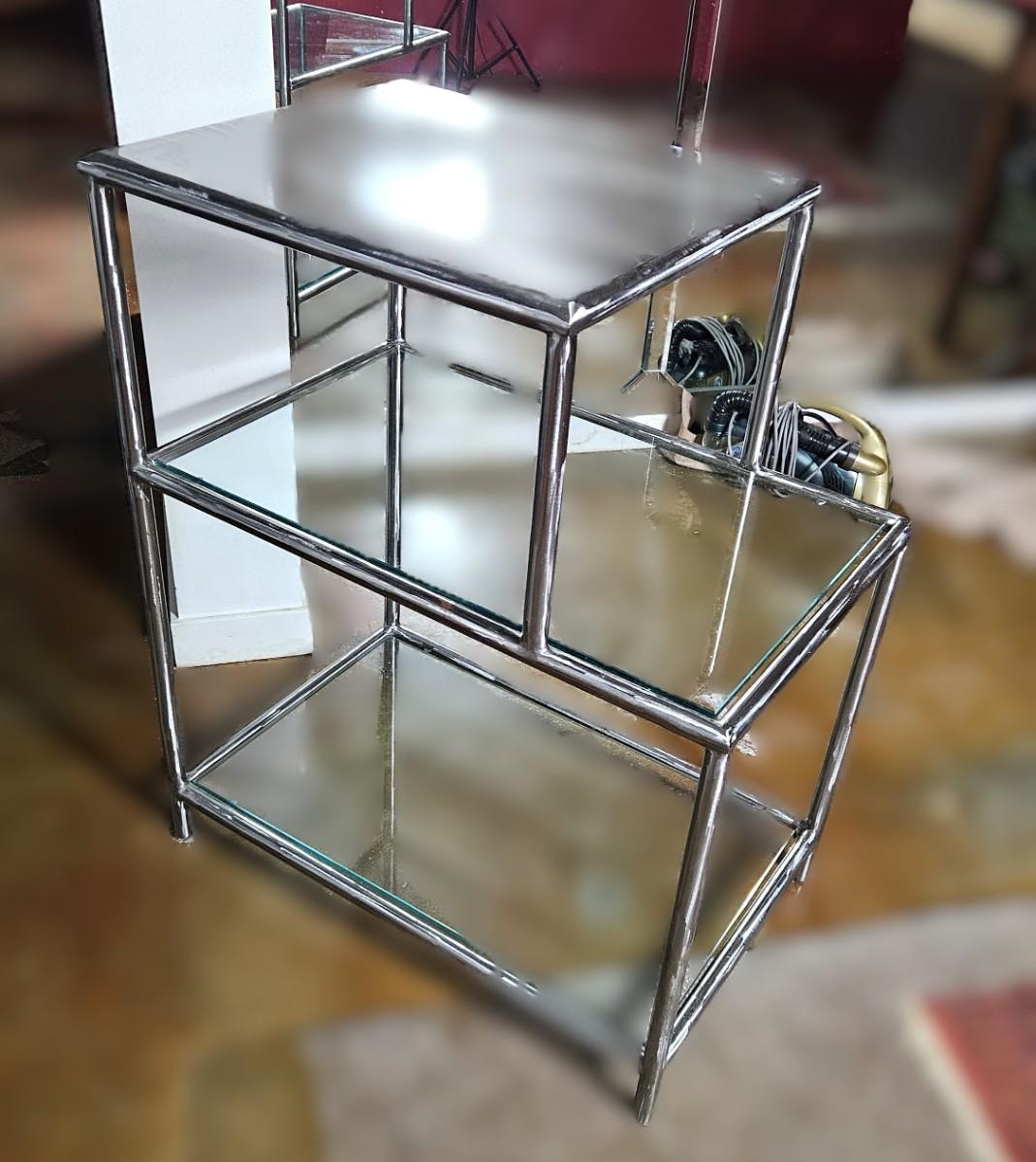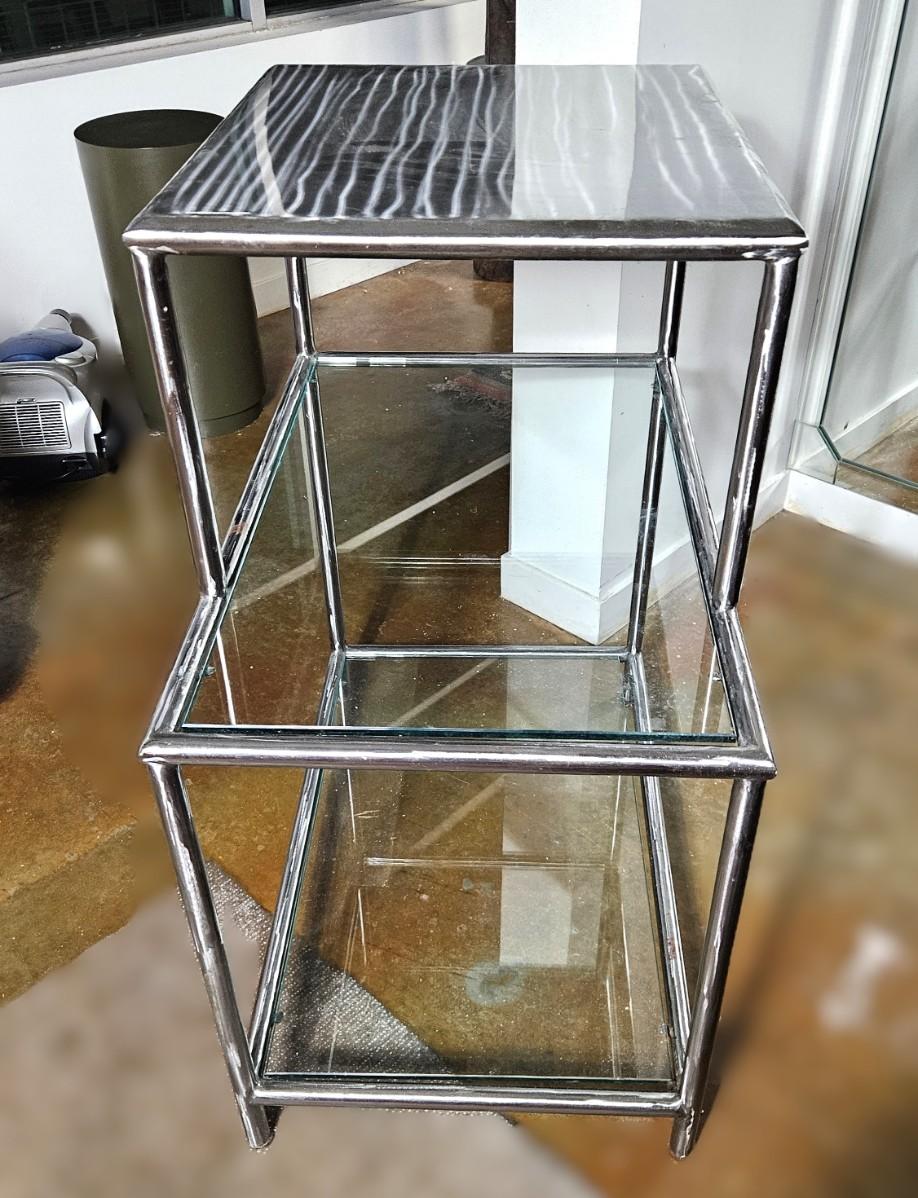 Mid Century Two Tier Glass Table, 36H, 19W, D30