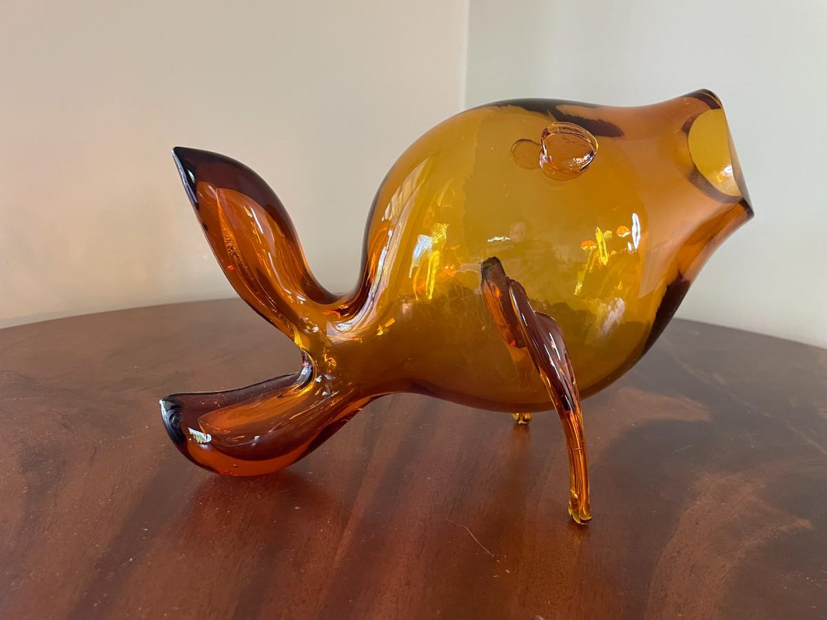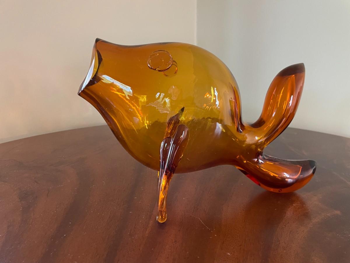 Amberina tangerine art glass. Excellent condition. 11H x 5W x 8H.