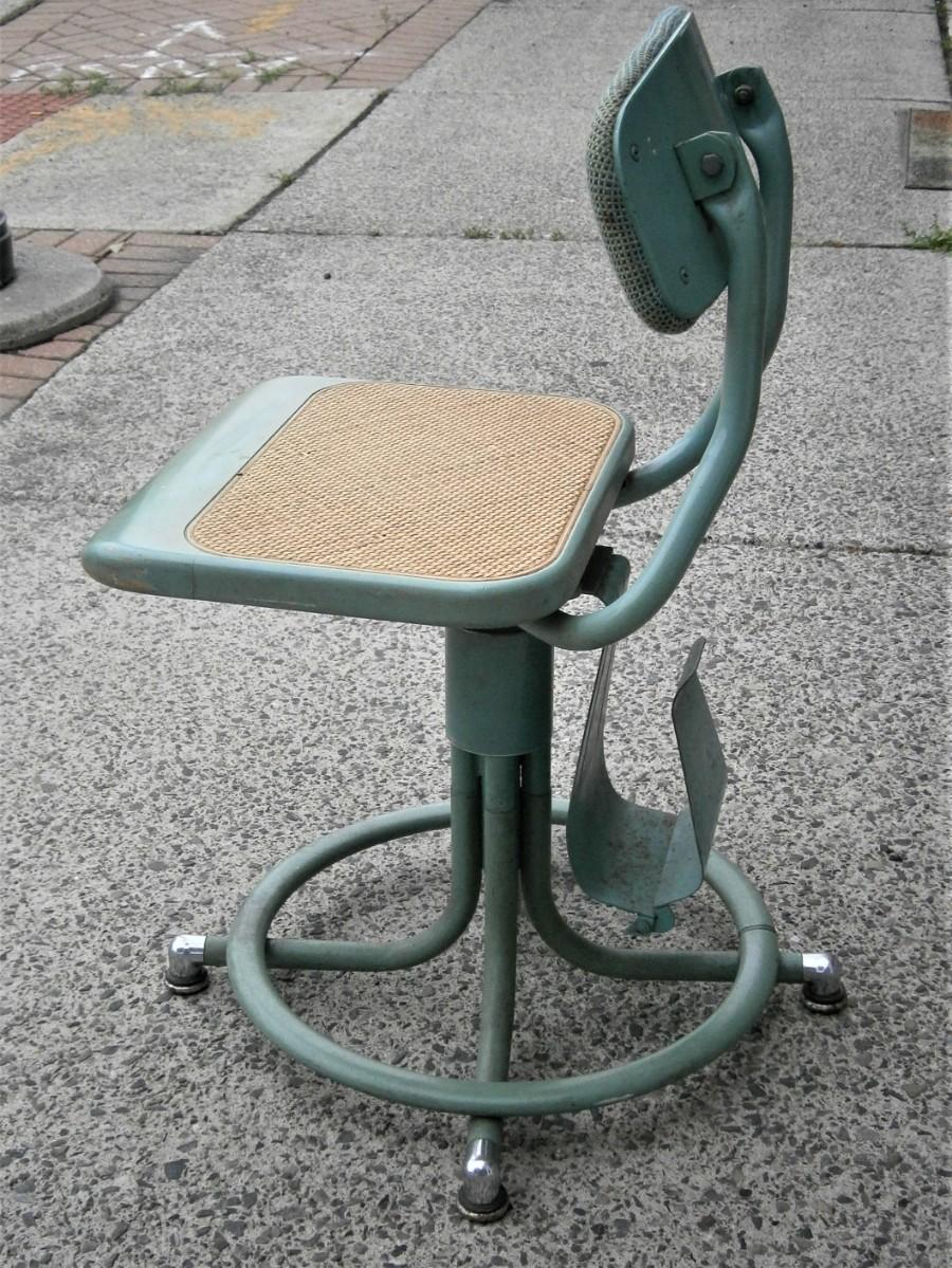 Mid Century Western Electric Telephone Operators Purse Holder Chair with pressed cane seat, 34 in. tall before adjusting height - turn seat to adjust height, very heavy steel tubular construction, from the mid 1900's, all original, cane still in good condition. PICK-UP ONLY by Appointment. Located in Port Ewen, NY 12466