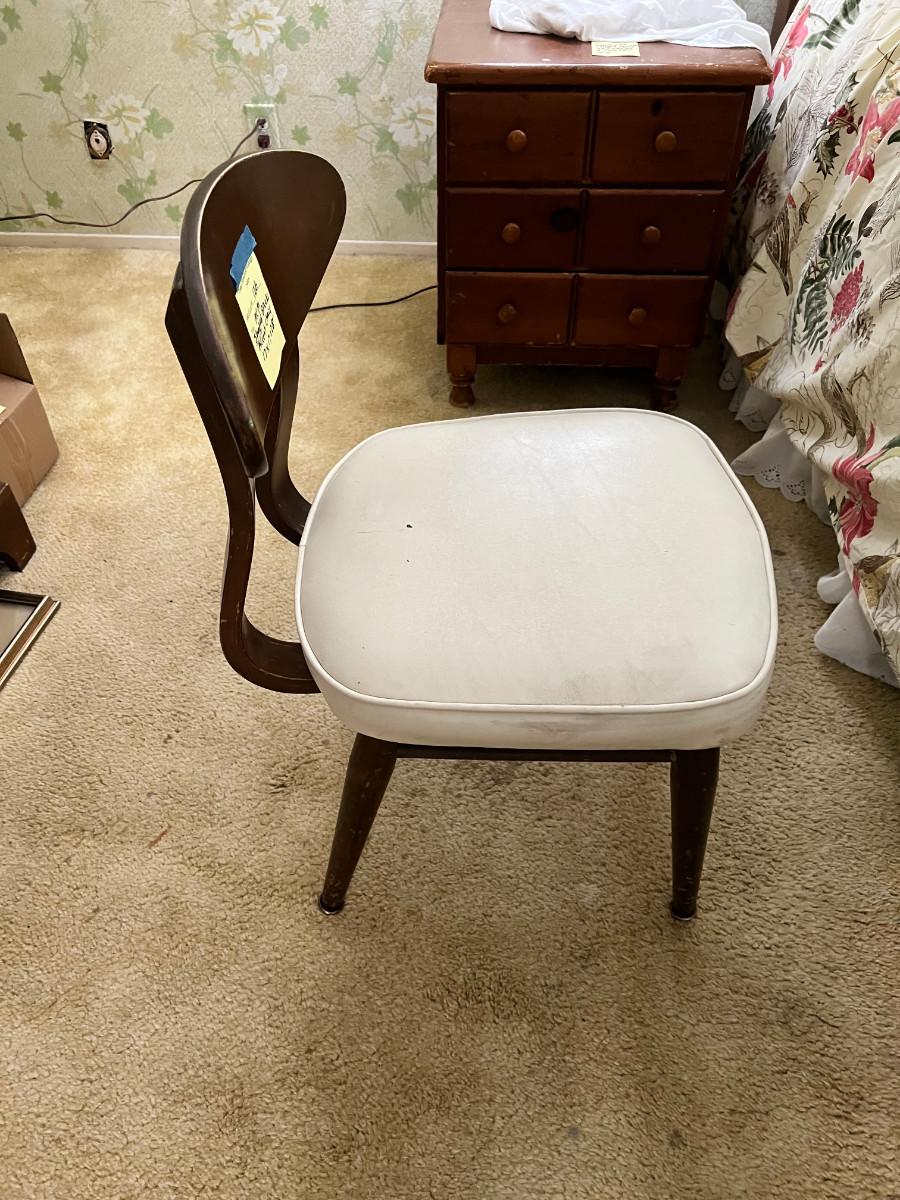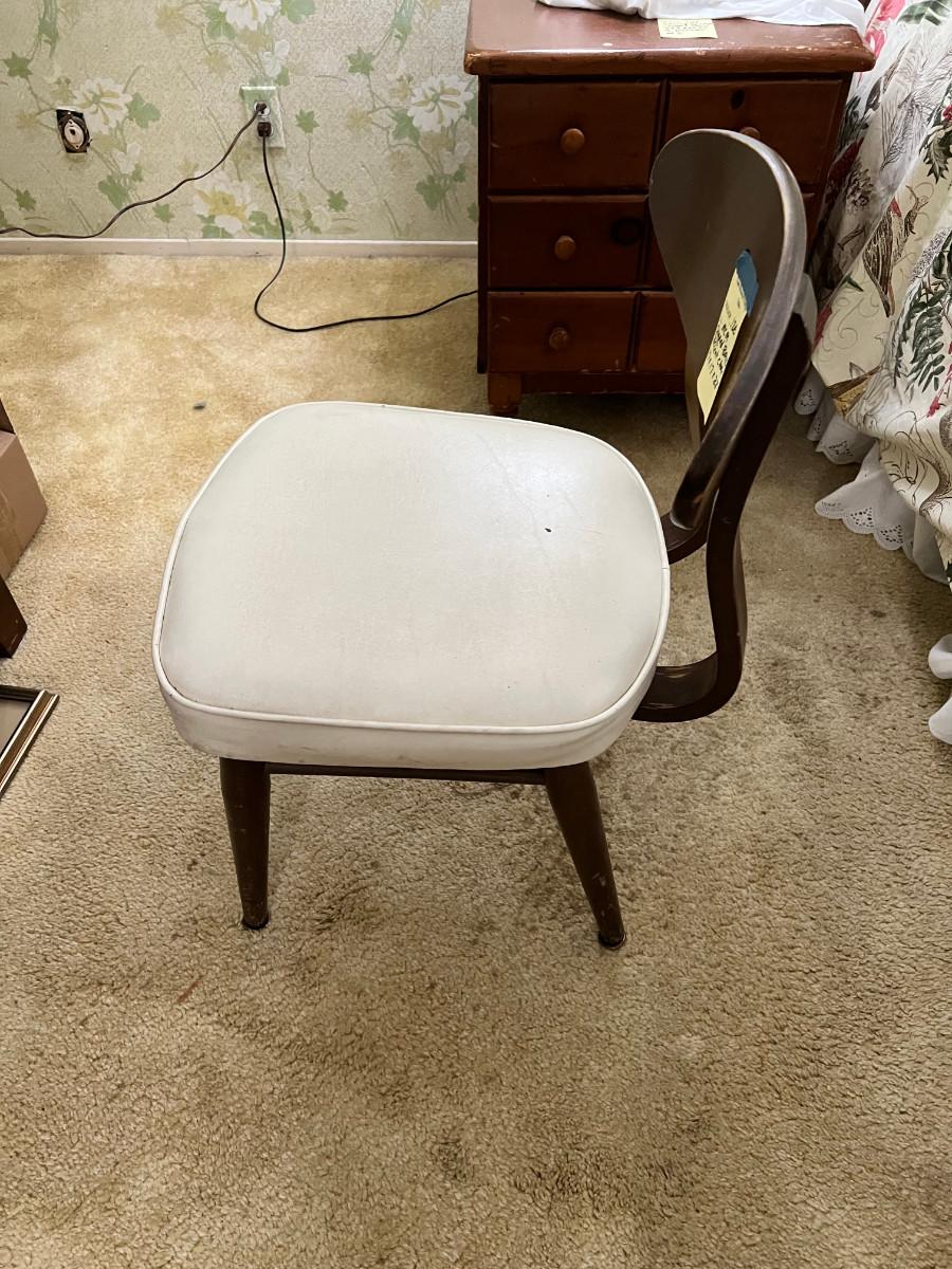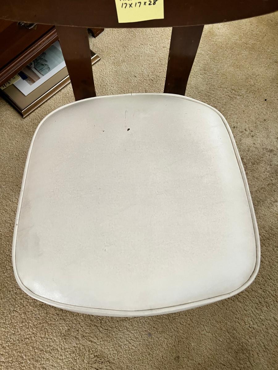 1 X 17 X 28, dark wood with white seat.