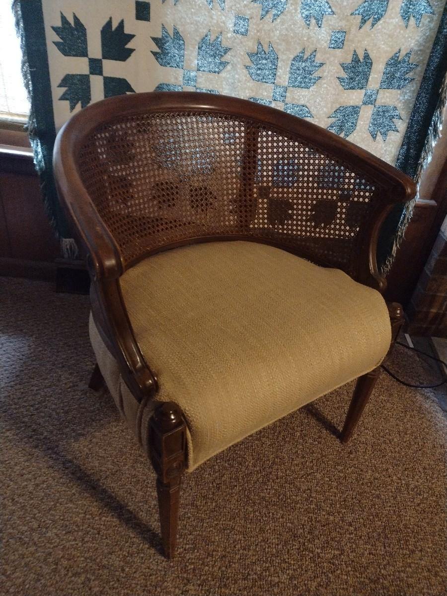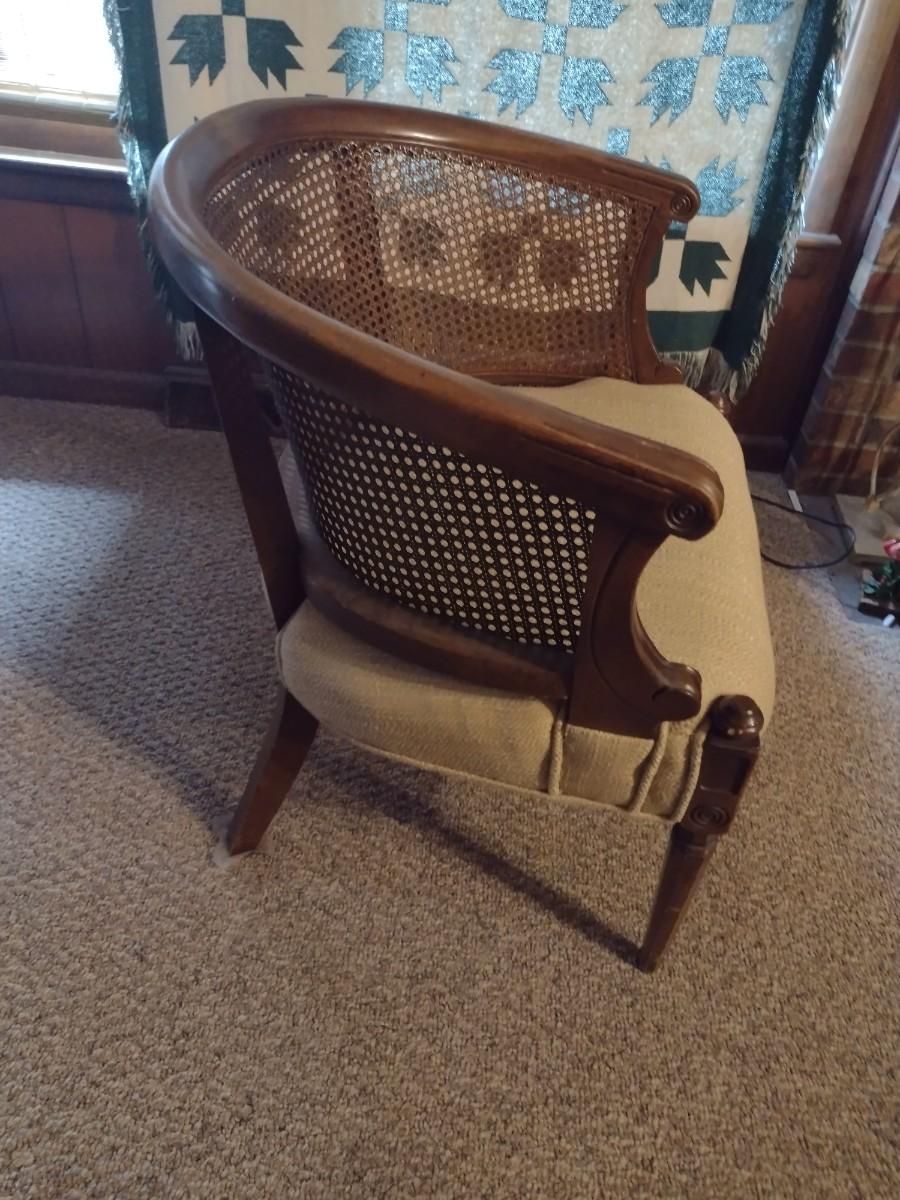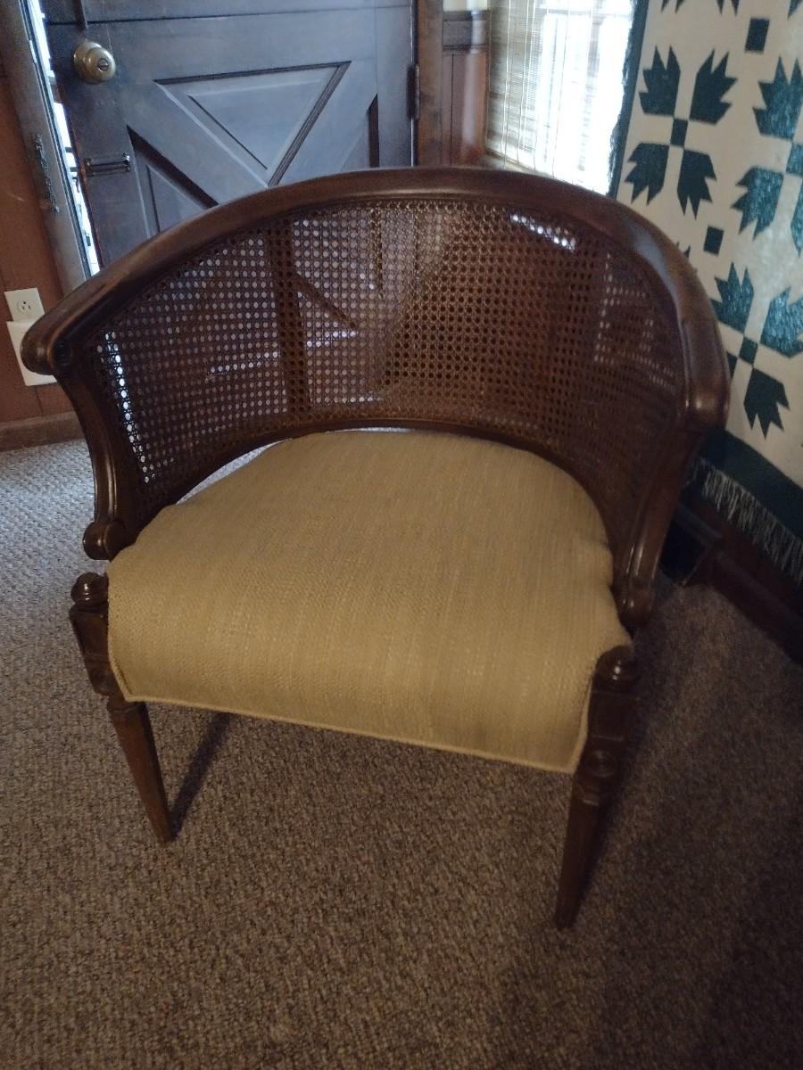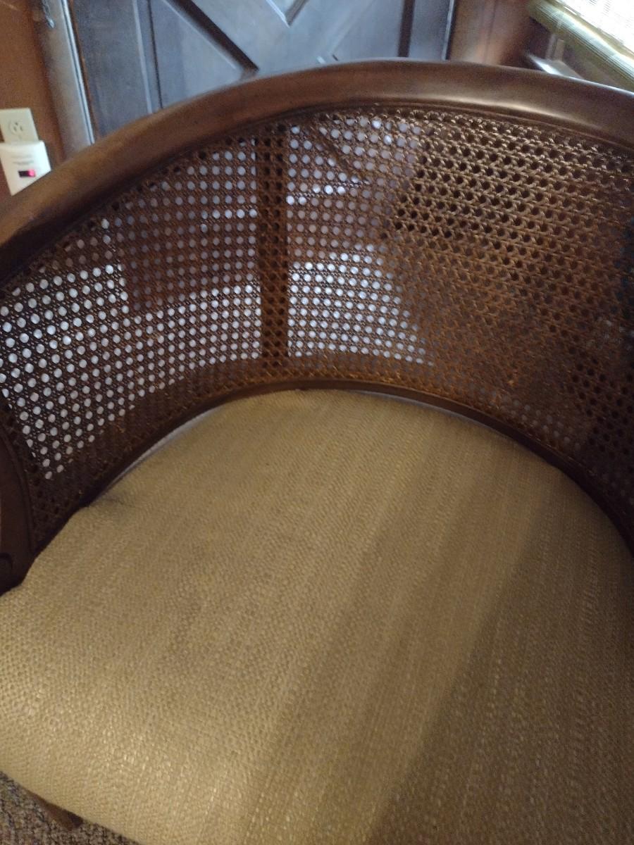 Mid Century Wood Framed Barrell Chair with Cane Back and Sides