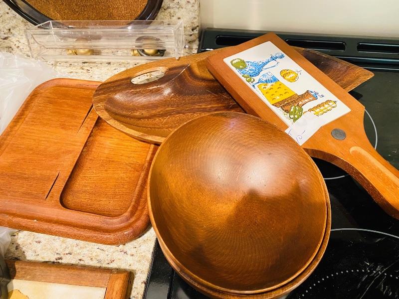 Mid Century Wood Kitchen Lot Cute Kitschy bread serving board.
