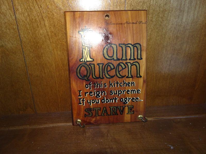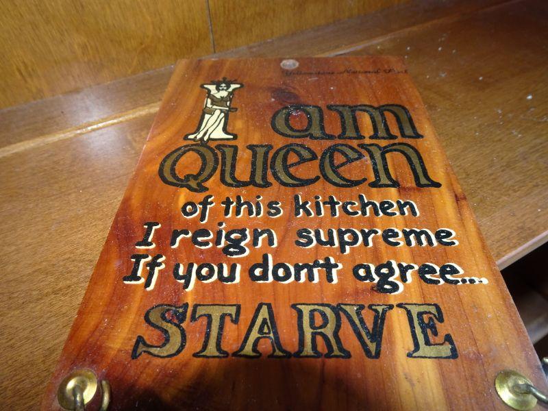 Mid Century Wooden Plaque "I am Queen of the Kitchen, I reign supreme, If you don't agree Starve!