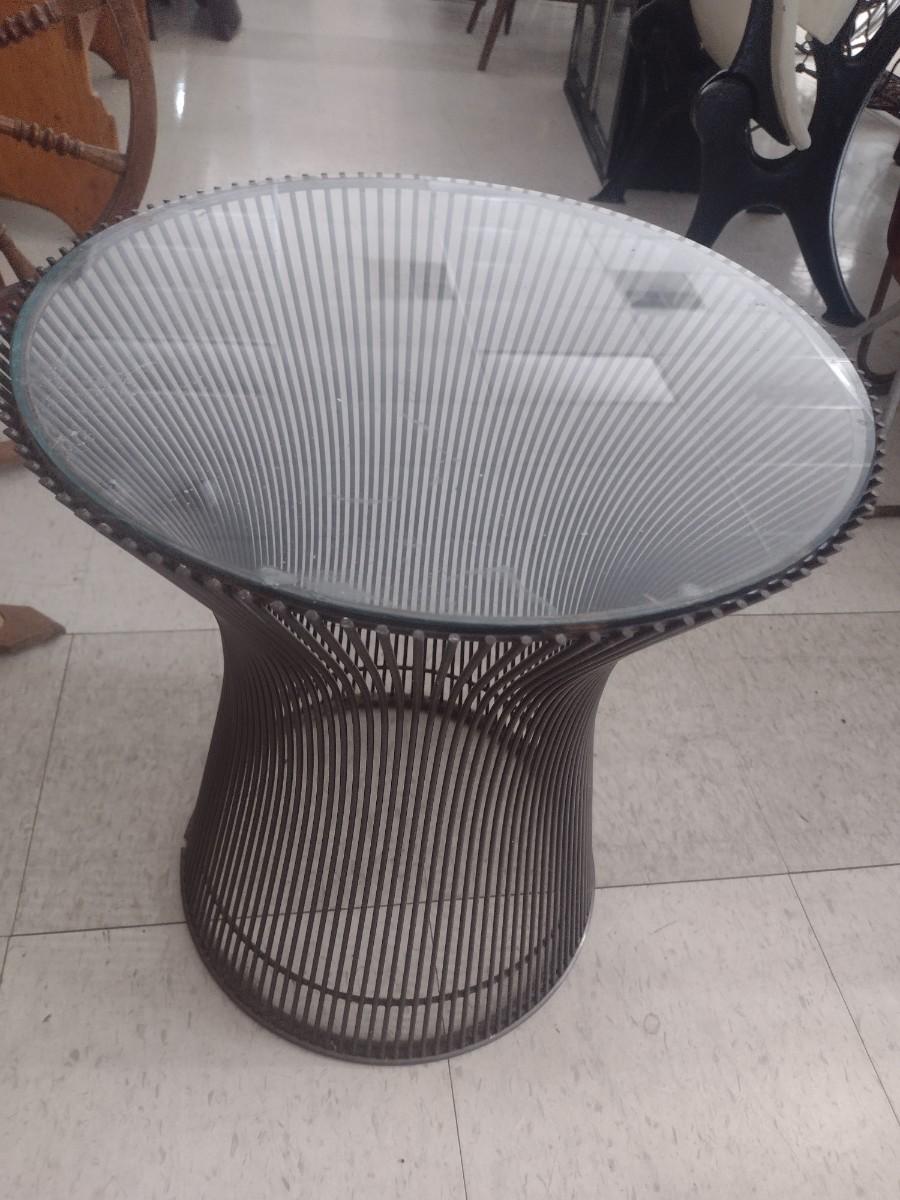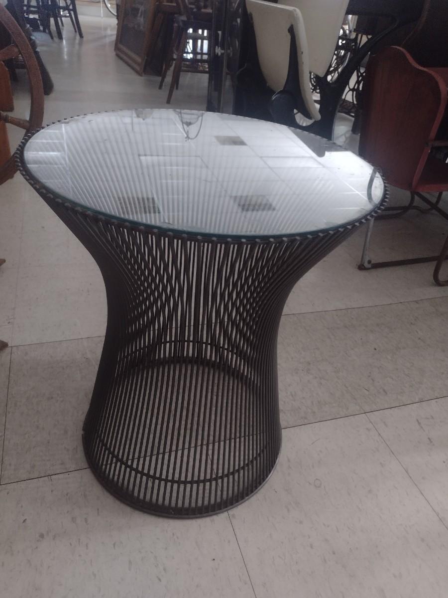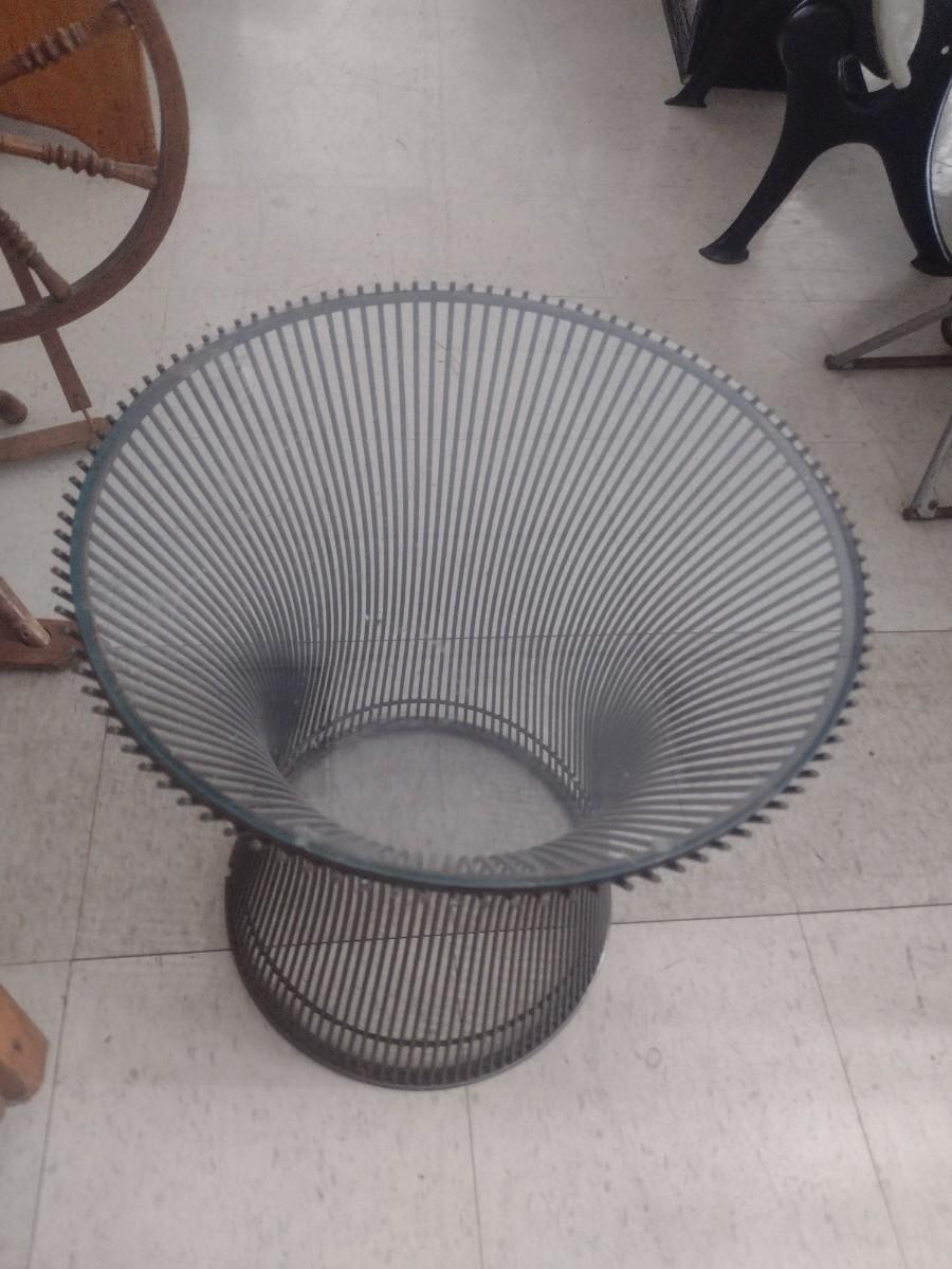 Mid Century Wrought Metal Wire Glass Top Planter Inspired by Knoll