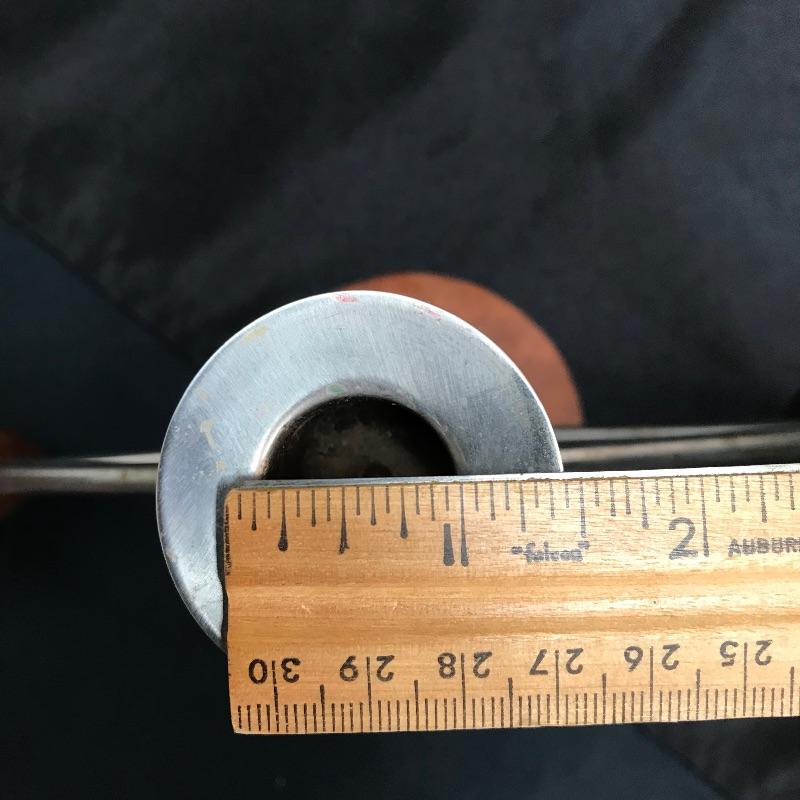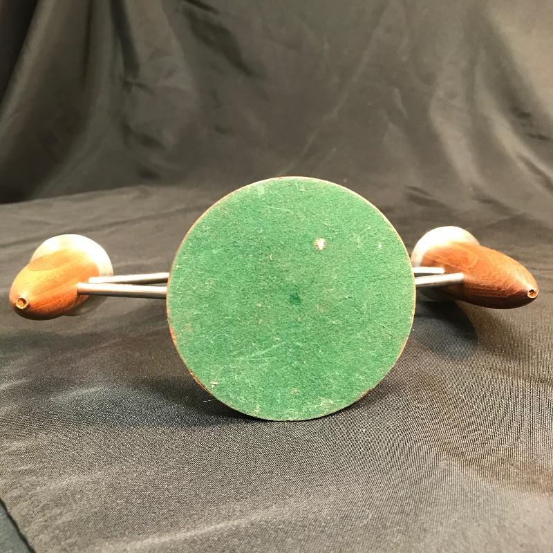 One wood and metal MCM candle holder. It has a green felt pad on the bottom. this will hold three, 1“ wide candles.